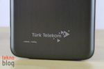 Plastik arka kapağı LG ve Türk Telekom logoları süslüyor. Çıkarılabilir kapağın altında pil, microSD ve nanoSIM kart yuvaları bulunuyor. Hoparlör de alt kenara doğru yerleştirilmiş. Hoparlörün ses çıkışı bir akıllı telefonun standartlarında, telefonu yatay konumda tutup film izlerken veya oyun oynarken de hoparlör kapanmıyor, hatta ses avuç içine çarparak daha da şiddetleniyor.