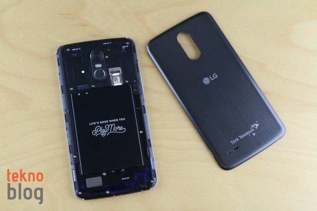 Plastik arka kapağı LG ve Türk Telekom logoları süslüyor. Çıkarılabilir kapağın altında pil, microSD ve nanoSIM kart yuvaları bulunuyor. Hoparlör de alt kenara doğru yerleştirilmiş. Hoparlörün ses çıkışı bir akıllı telefonun standartlarında, telefonu yatay konumda tutup film izlerken veya oyun oynarken de hoparlör kapanmıyor, hatta ses avuç içine çarparak daha da şiddetleniyor.