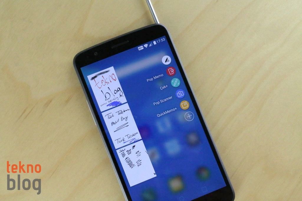 Stylus 3’ün kapasitif kalemi çıkarıldığında açılan menüde PopMemo adı verilen hızlı not uygulaması, Çek+ adı verilen ekran görüntüsünü alma ve üstünde düzenlemeler yapma aracı, Pop Scanner adlı kameranın çektiği görüntüden kırpma aracı ve QuickMemo+ uygulaması gibi seçenekler bulunuyor. Ayrıca bu menüye sık kullandığınız bir uygulamanın kısayolunu da ekleyebilirsiniz. Ekran kalemi ile yapılacaklar v.b. listeleri pratik şekilde tutabilir veya telefon numarası ve benzeri bilgileri hızlıca not alabilirsiniz. İnce yapıdaki ekran kaleminin ucu 1.8 mm.’lik ucu, yumuşak ve rahat şekilde yazı yazma imkanı sağlıyor.