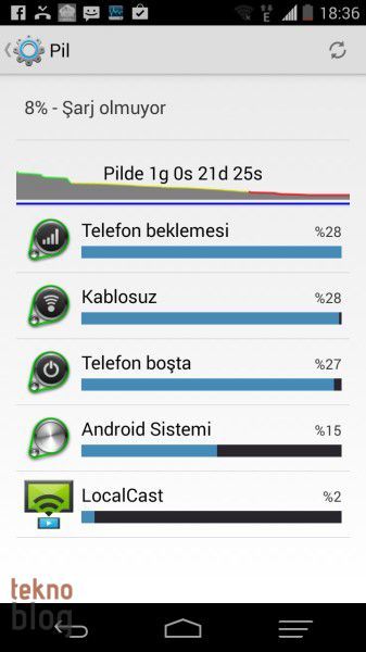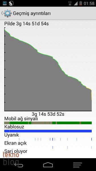 Turkcell T50’de yer alan 2300 mAh kapasiteli batarya sabit, değiştirilemiyor. Performans noktasında bu pilin iyi bir grafik çizdiğini söylemek mümkün olabilir. Eğer telefonu çok sık kullanmazsanız, 3G ve Wi-Fi gibi kablosuz bağlantılar sürekli açık olsa da, 3-4 gün arası bir kullanım süresi yakalanabiliyor. Birkaç telefon görüşmesi, internette gezinme, fotoğraf çekimi gibi işlerin yer aldığı normal yoğunluklu bir kullanımda da bu telefon bir günü rahatlıkla çıkarır gibi görünüyor.