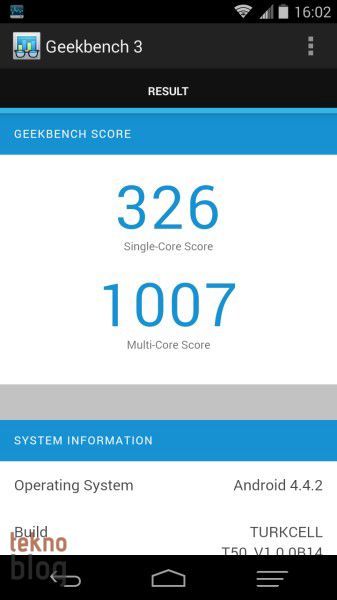 İnternet tarayıcısı Chrome hem mobil siteleri hem de masaüstü siteleri seri şekilde açıyor. SunSpider Benchmark testinden elde edilen 1540 ms’lik sonuç ortalamanın üzerinde. iPhone 5s gibi, Safari mobil internet tarayıcısı bir hayli gelişmiş ve işlemci gücü yüksek bir telefonun 500 ms. civarında sonuçlar aldığını karşılaştırma sağlaması amacıyla not edelim. Sonuçlarına güvendiğimiz bir başka popüler test olan AnTuTu’dan bu telefon 17474 puan elde etti. 2014 model amiral gemisi cihazlar bunun iki katı civarında sonuçlar elde ediyor. T50’nin puanıysa 2012’nin amiral gemisi telefonu Samsung Galaxy S3 ile aynı seviyelerde. 3DMark IceStorm Extreme’den de bu cihaz 5585 puan elde etmeyi başardı.