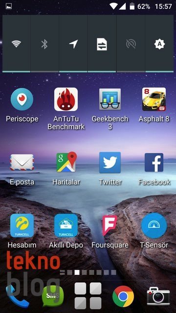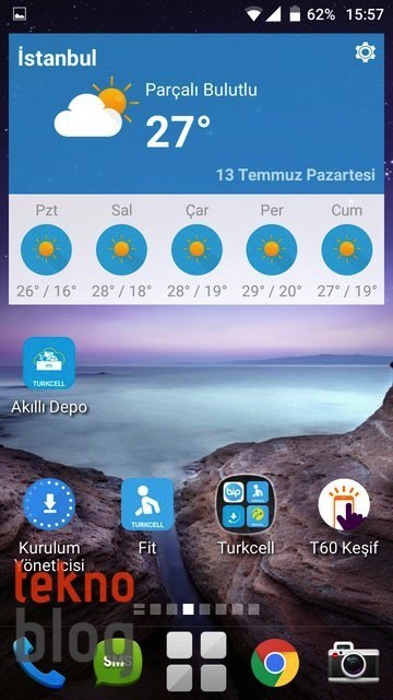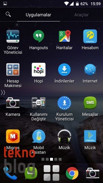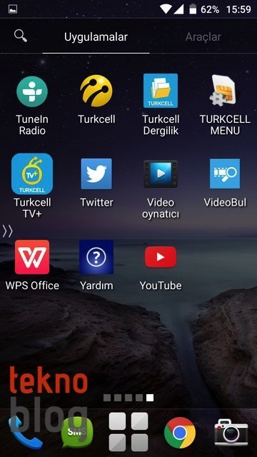 Yukarıda saydıklarımız dışında Turkcell T60’ta Gmail, Google+, Drive, Haritalar, Play Müzik, Play Kitaplar, Play Oyunlar, YouTube, Hangout, Cardboard gibi Google uygulamalar da yüklü olarak geliyor. Cardboard uygulamasını burada görünce şaşırdık, ancak sanırız ki bu uygulama Turkcell T60 ile birlikte opsiyonel olarak sunulacağı söylenen sanal gerçeklik başlığıyla ilgili olsa gerek.