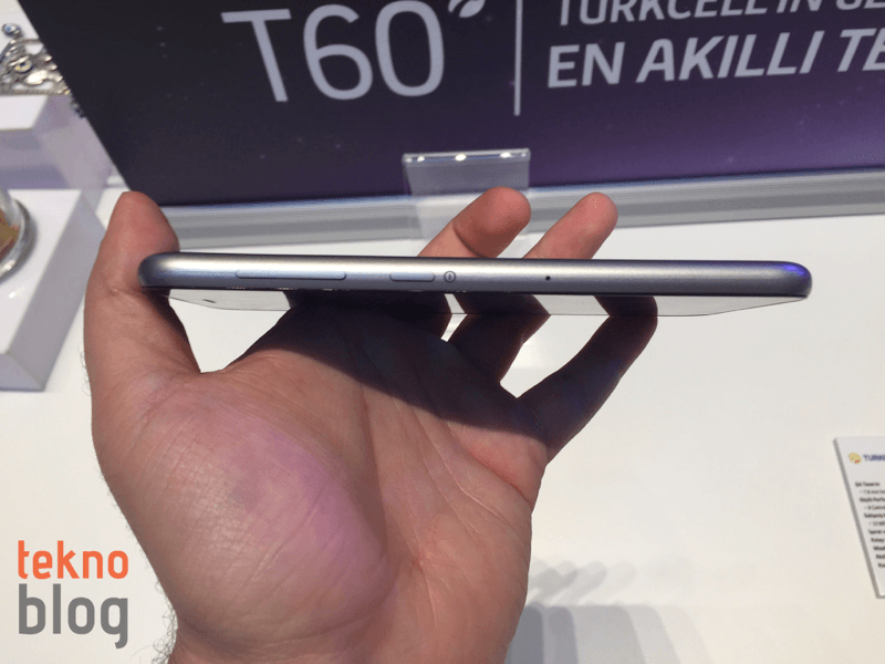 Turkcell T60’ın bir kenarında ses kontrol düğmeleri ve güç butonu bulunuyor. Diğer tarafta ise SIM kart ve microSD kart yuvaları yer alıyor. Turkcell T60’ın 16 GB dahili hafızasının üstüne microSD kart desteği sayesinde 32 GB daha eklenebiliyor.