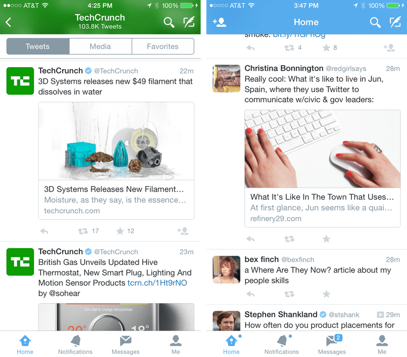 Twitter ve Facebook arasındaki benzerliklere bir yenisi daha eklendi. Dış sitelere ait bağlantılar, bundan böyle iOS ve Android cihazlardaki Twitter akışlarında otomatik olarak genişletilecek. Mobil cihazları üzerinden Twitter akışlarına göz gezdiren kullanıcılar, bazı yayın kuruluşları tarafından gönderilen tweetlerin zaman akışında büyük bir fotoğraf, birkaç giriş cümlesi ve ana yazıya giden bağlantı eşliğinde gösterildiğini fark edeceklerdir. Twitter genişletilmiş ön izleme sayesinde zaman akışını görsel açıdan daha zengin hâle getirme konusunda bir adım daha atmış oldu.