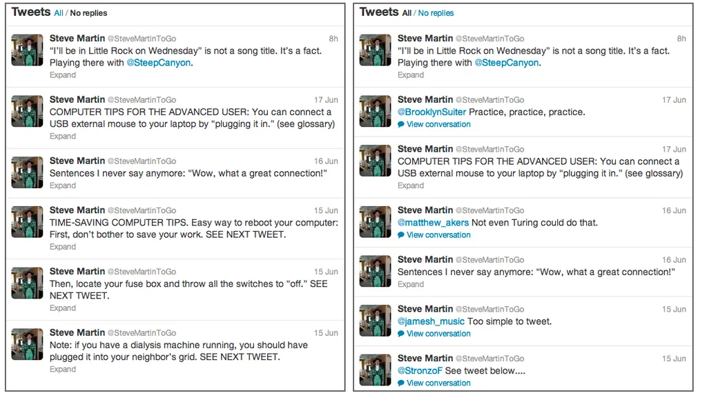 Twitter’ı web üstünden kullananlar, başka bir kullanıcının sayfasına girdikleri zaman aradıklarını bulmakta başkalarına verilen yanıtlardan dolayı zaman zaman zorluk yaşamaktaydı. Özellikle başkalarına verilen cevapların daha yoğun olduğu ünlülere ait onaylanmış hesaplarda bu sıkıntının daha fazla hissedildiği biliniyordu. Bu şikayetleri dikkate alan Twitter ekibi, başkalarına verilen yanıtları görmeme seçeneğini siteye ekledi.