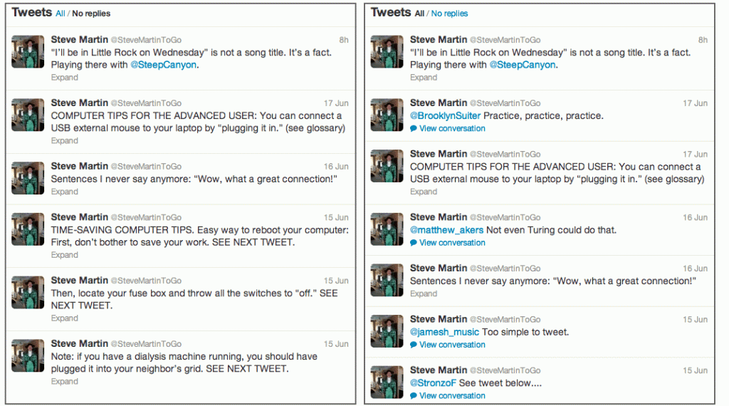 Twitter’ı web üstünden kullananlar, başka bir kullanıcının sayfasına girdikleri zaman aradıklarını bulmakta başkalarına verilen yanıtlardan dolayı zaman zaman zorluk yaşamaktaydı. Özellikle başkalarına verilen cevapların daha yoğun olduğu ünlülere ait onaylanmış hesaplarda bu sıkıntının daha fazla hissedildiği biliniyordu. Bu şikayetleri dikkate alan Twitter ekibi, başkalarına verilen yanıtları görmeme seçeneğini siteye ekledi.