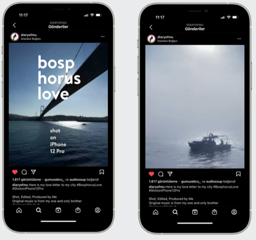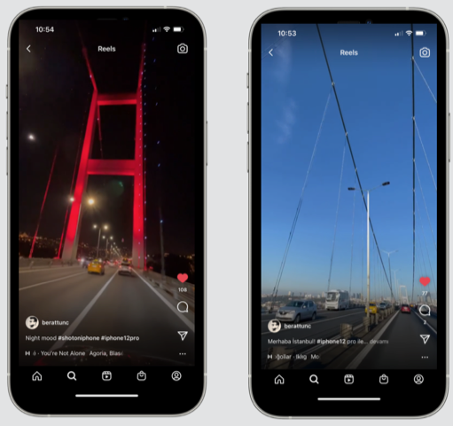 iPhone ile İstanbul videosunda özellikle Ultra Geniş kamerayı kullanan Tunç, istediği sinematografik etkiyi bu şekilde sağladığını belirtiyor. iPhone 12 Pro’nun 10bit görüntü kaydediyor olması sayesinde renk testlerinde olumlu sonuç verdiğini ekliyor.