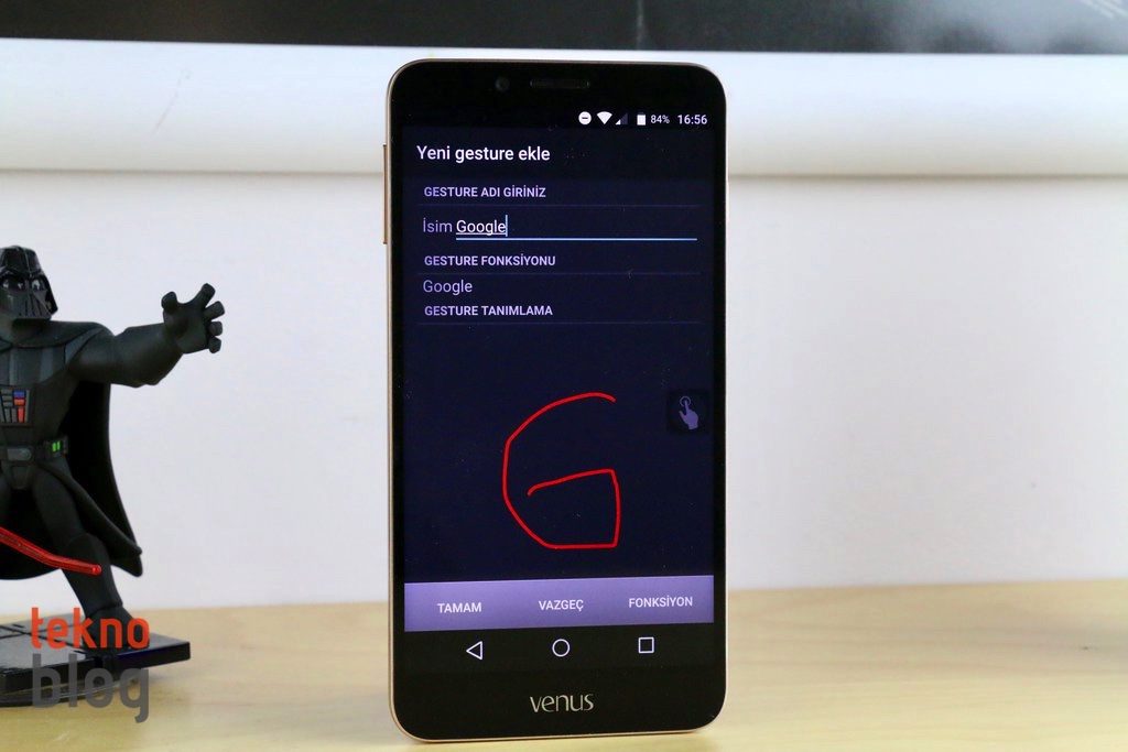 Venus V3 5580, daha önceki Venus V3 telefonlarında bulunan yazılım araçlarının önemli bir kısmını bünyesinde barındırıyor. Hareketle kontrol de bu araçlar arasında bulunuyor. Gesture uygulaması üzerinden kısayollar oluşturarak belli uygulama ve görevler hızlı biçimde başlatılıyor. Bunun için görevi belirlemek ve ekrana bir şekil ya da harf çizmek yeterli oluyor.