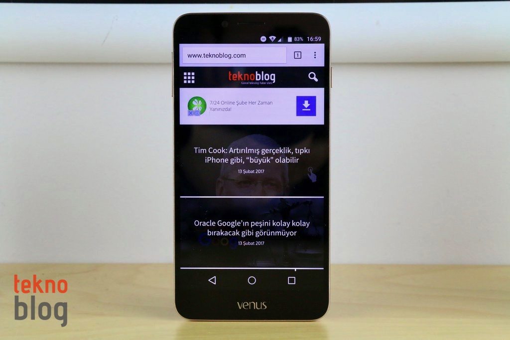 Venus V3 5580’in görüntüleme açıları yeterli seviyede. Renk doygunluğuyla da tatmin etmeyi başaran ekran, iç mekanlarda herhangi bir sıkıntı olmaksızın görülebiliyor. Dolayısıyla Venus V3 5580’in video içerik tüketimi için de yeterli bir cihaz olduğunu söylemek, yanlış bir önerme olmayacaktır.