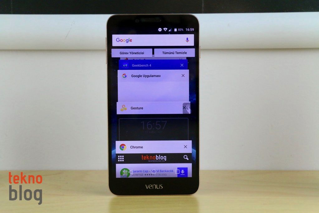 Venus V3 5580’in kurulumu, ilk başta pek çok giriş seviyesi Android telefon ile aynı gibi görünüyor. Ancak küçük farklar, performansta ciddi sıçramalar sağlıyor. 64-bit işlemci ve 3 GB RAM’in varlığı, Venus V3 5580’in performans bakımından yakın dönemde incelediğimiz diğer giriş seviyesi Android telefonlara karşı avantaj kazanmasını sağlıyor.