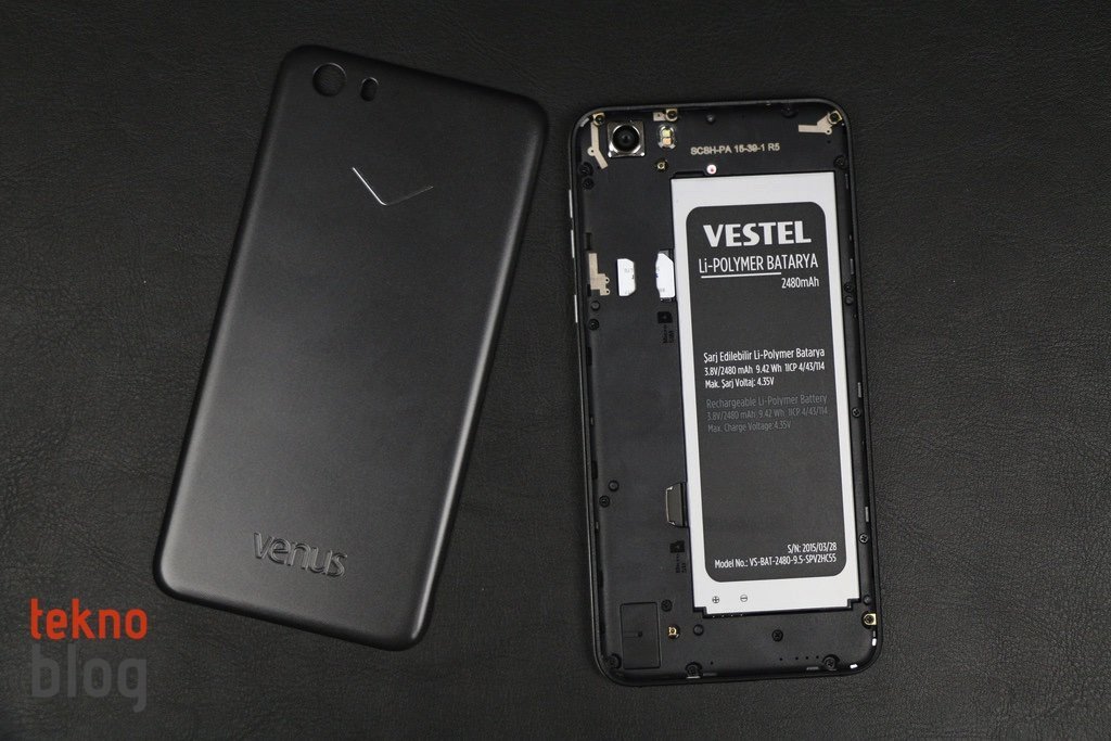 Vestel Venus V3 5570’in arka yüzeyinde 13 megapiksel arka kamera ve hemen yanında bulunan çift renkli LED flaş göze çarpıyor. Panelin ortasında Vestel’in logosu olarak nitelenebilecek bir “v” harfi, alt kısımda ise işleme yoluyla yazılan “Venus” yazısı yer alıyor. Arka panelin sağ alt kısmında bulunan küçük girinti ise kapağın çıkarılmasını mümkün kılıyor. Girintiye yapılan küçük bir tırnak müdahalesinin ardından kapak yerinden çıkıyor. Kapak yerinden çıkarıldığında kullanıcıların karşısına 2480 mAh kapasiteli Li-Polymer batarya, microSIM ve microSD yuvaları çıkıyor.