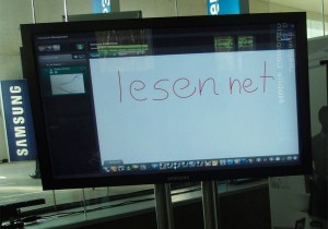 Samsung’un Almanya’da düzenlediği Roadshow etkinliğinde şirketin 82 inç’lik elektronik beyaz tahtası görücüye çıktı. Çoklu dokunma destekli interaktif ekran hem PC’ye hem de Mac’e bağlanabiliyor.