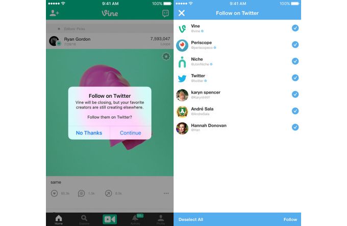 Vine Camera uygulaması faaliyete geçtikten sonra uygulama üzerinden eski Vine videolarını indirmek mümkün olmayacak. Vine’ın internet sitesi ise eski videoların görüntülenebileceği bir tür veri tabanı işlevi görecek. Twitter, Vine üzerinde takip ettiği kişileri kaybetmek istemeyenlere “Twitter’da takip et” şeklinde öneri mesajları iletmeye de başladı.