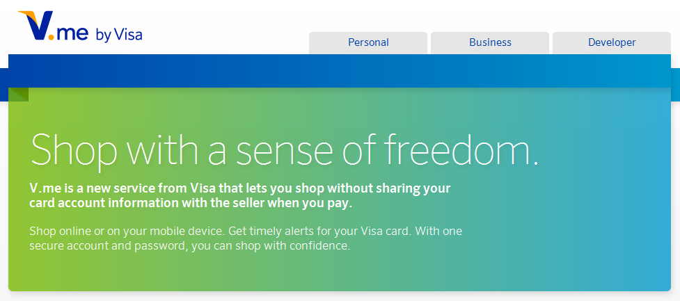 Öte yandan Visa yeni bir geliştirici programını da hayata geçirdi. Bu program sayesinde yazılım geliştiricilerine çeşitli V.me uygulamaları geliştirme fırsatı verilecek. Program dahilinde mobil uygulamalar için API, web siteleri için de JavaScript kodları sunulacak. Çevrimiçi ödeme sistemleri giderek daha fazla kişi tarafından kullanılıyor, ancak fiziksel ödeme sistemlerinin yerini almayı henüz başarabilmiş değil. Visa, sunacağı servisin mobil cihazlarda çevrimiçi veya kişiler arası ödeme süreçlerinde kullanılmasını hedefliyor. Bu noktada yakın alan iletişimi teknolojisinden de yararlanılması planlanıyor.