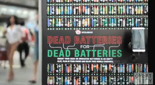 “Ölü Piller için Ölü Piller” şeklinde Türkçeleştirebileceğimiz proje kapsamında kullanılmış piller akıllı telefonlar için ek güç kaynağına dönüştürülüyor. Uzaktan kumanda, radyo, vb. cihazlarda kullandığımız kalem piller, içinde kullanıldıkları cihazlar işlev görmemeye başlayınca yenisiyle değiştiriliyor. Halbuki bu pillerin içinde ortalama 400 mAh kapasitelik güç bulunduğu ve bunun da bir akıllı telefonu şarj etmek için yeterli olduğu söyleniyor. Bu fikirden yola çıkan Vitamilk yeni bir şarj istasyonu geliştirmiş.