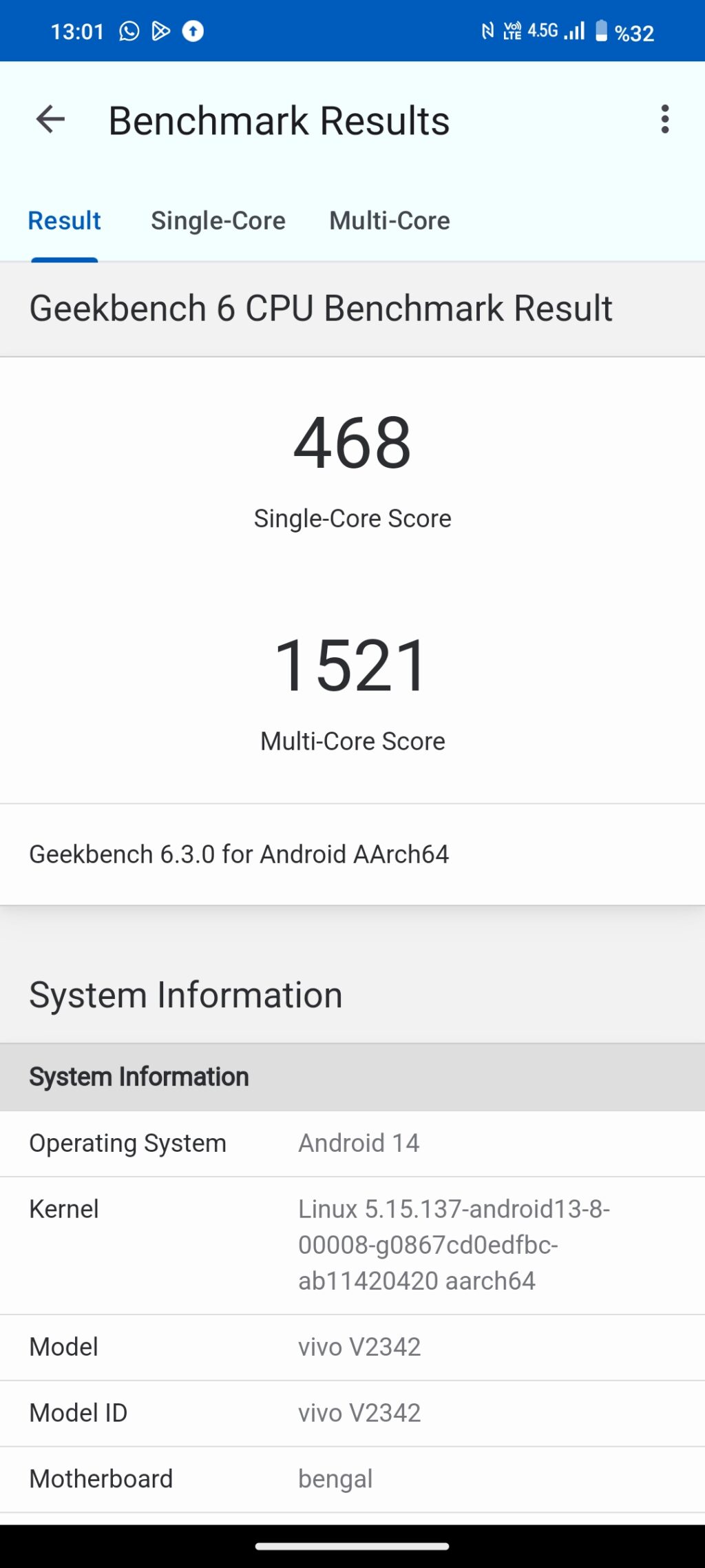 Cihazın 16-17 bin TL seviyelerindeki fiyat etiketi, ortalama bir performans sunan Snapdragon 685 ile bir araya geldiğinde, fiyat/performans dengesi açısından biraz sorgulanabilir hale geliyor. Belki Vivo, bu modelde aynı fiyat seviyesindeki bazı telefonlarda gördüğümüz ve daha üstün bir performans sunabilecek Helio G99 yonga setini tercih edebilirdi. Bu durum, kullanıcı deneyiminin biraz daha olumlu yönde artmasını sağlayabilirdi. GeekBench 6 benchmark testi, hem yukarıda belirttiğimiz hususu hem de pratikte gözlemlediğimiz durumu destekliyor.