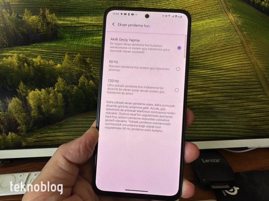 120 Hz yenileme hızı, günümüzde birçok Android telefonda gördüğümüz yüksek yenileme hızlı ekran beklentilerini karşılıyor. Kullanıcılara 60Hz, 60/120Hz ve 120Hz olmak üzere üç farklı yenileme hızı seçeneği sunuluyor. Orta seçenek olan 60/120Hz, ekrandaki içeriğe bağlı olarak yenileme hızını dinamik olarak ayarladığı için, özellikle pil performansını da gözeten, tercih edilebilir bir seçenek olarak öne çıkıyor.