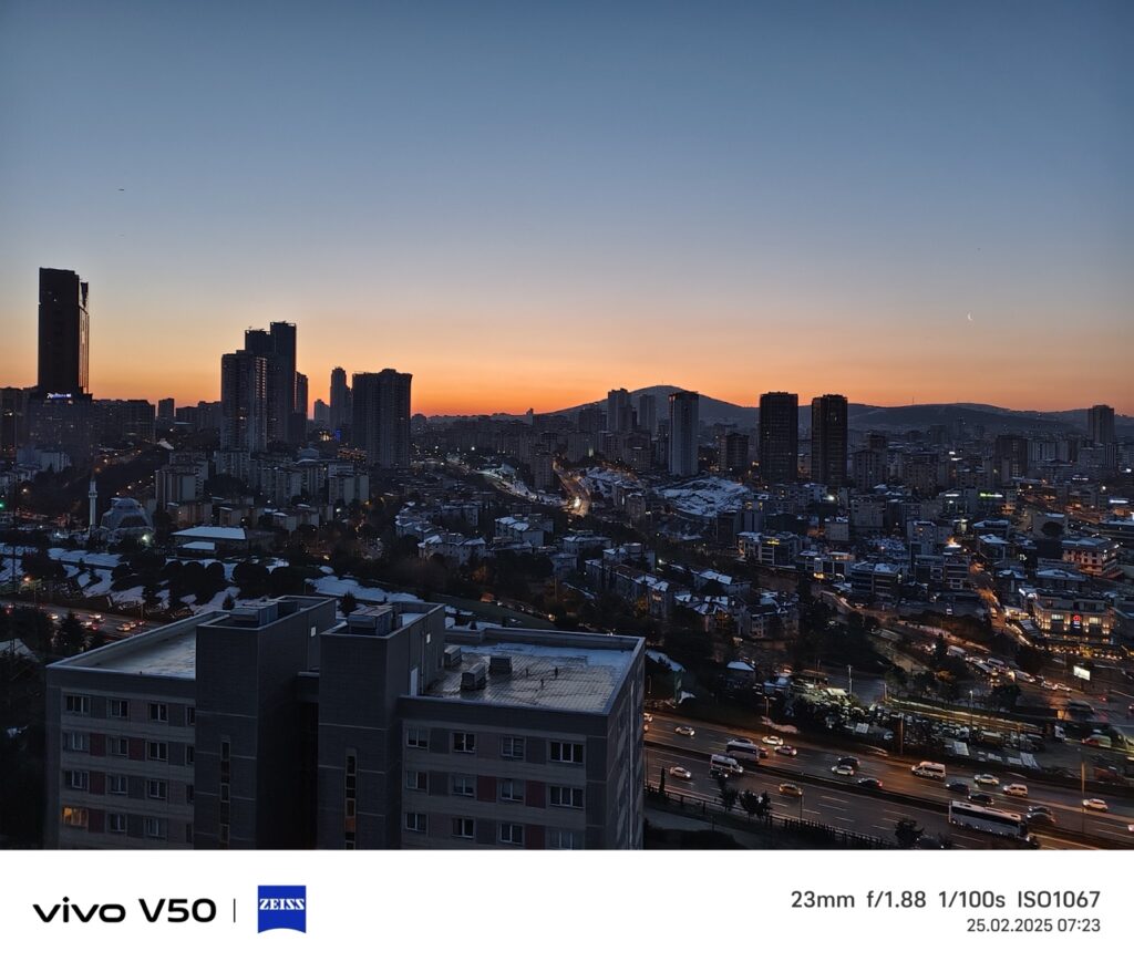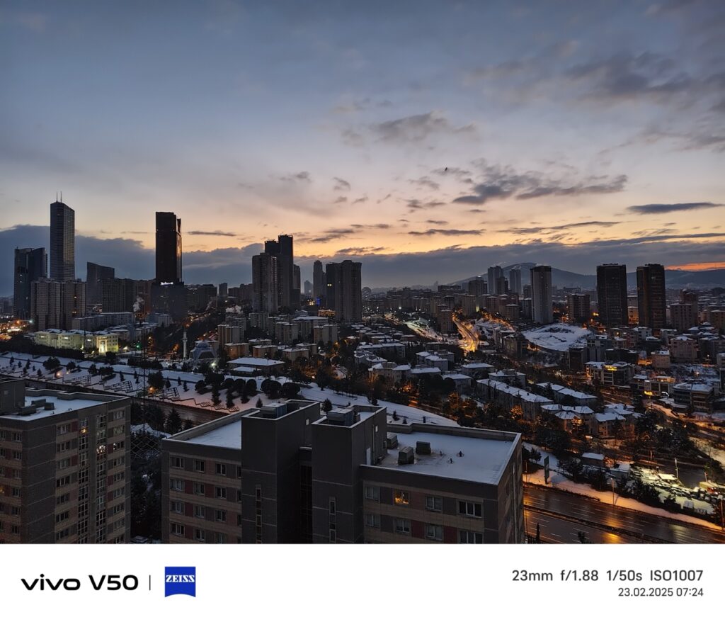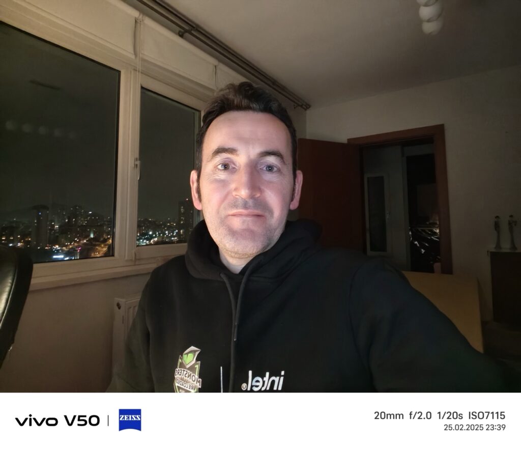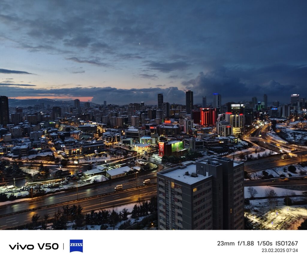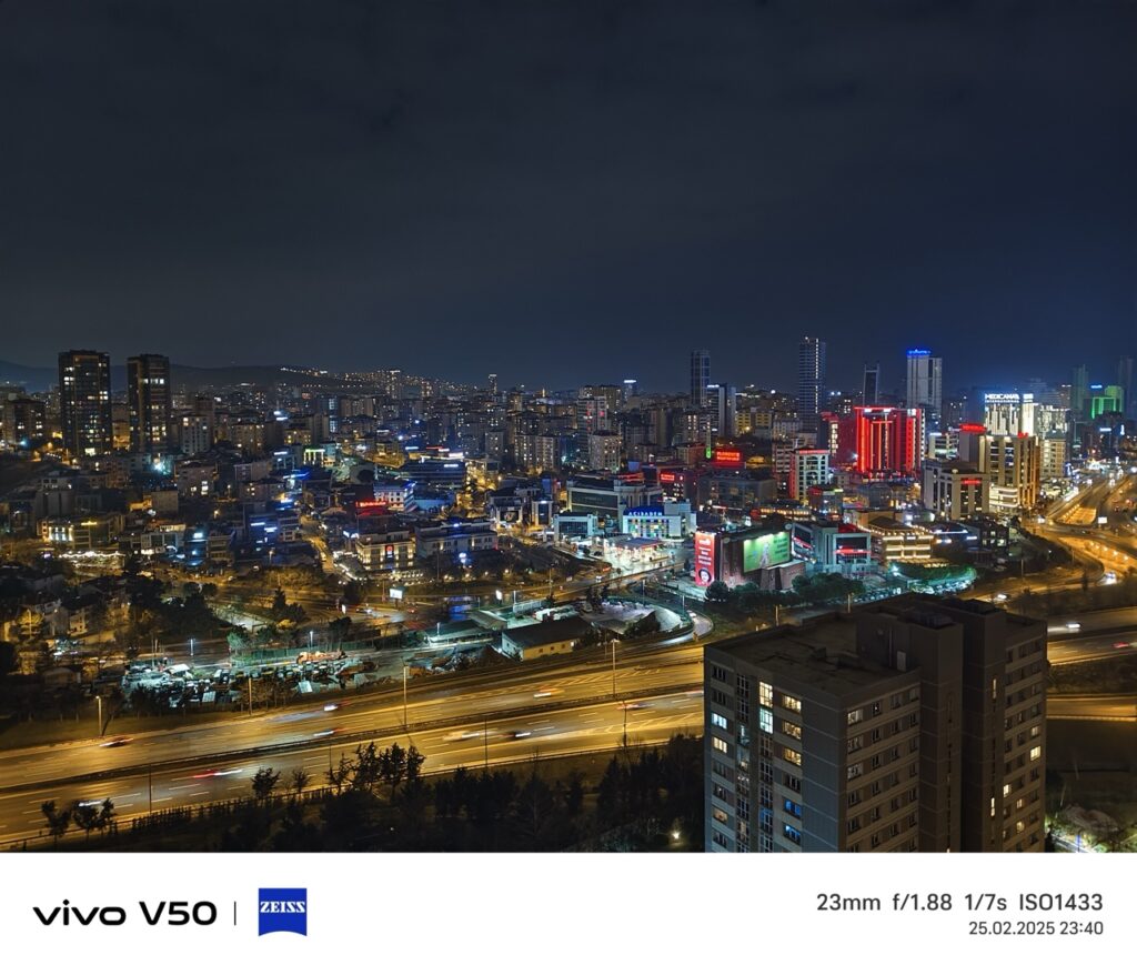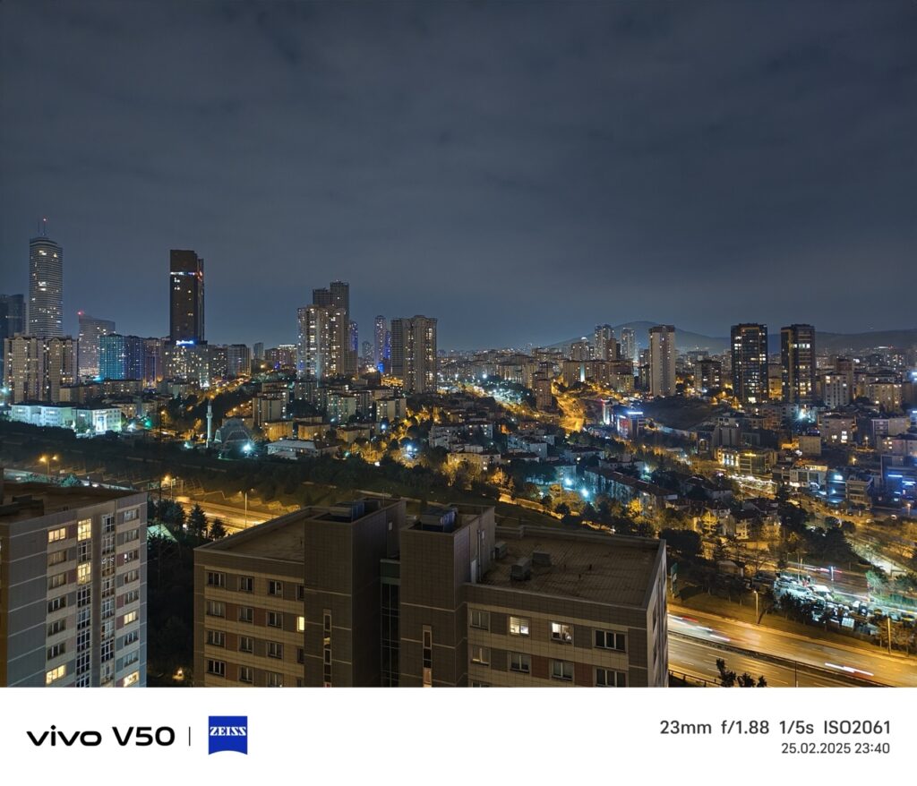 Düşük ışık performansında Vivo V50, yeni nesil yapay zekâ destekli gece modu sayesinde daha parlak ve detaylı kareler yakalayabiliyor. Geniş diyafram açıklığı ve optik görüntü sabitleme sistemi, telefonun düşük ışıkta daha net fotoğraflar çekmesine yardımcı oluyor. Işık kaynaklarını fazla patlatmadan doğru pozlamayla çekim yapabilmesi, rakiplerine kıyasla bir avantaj sağlıyor. Gece çekimlerinde gölgelerdeki detayları koruyabilmesi, düşük ışık performansını güçlü kılan unsurlardan biri. Genel anlamda, Vivo V50 kamera tarafında güçlü bir deneyim sunarken, ultra geniş açılı lensin geliştirilmesi ve yüz detaylarının biraz daha doğal bırakılması gerektiği söylenebilir.