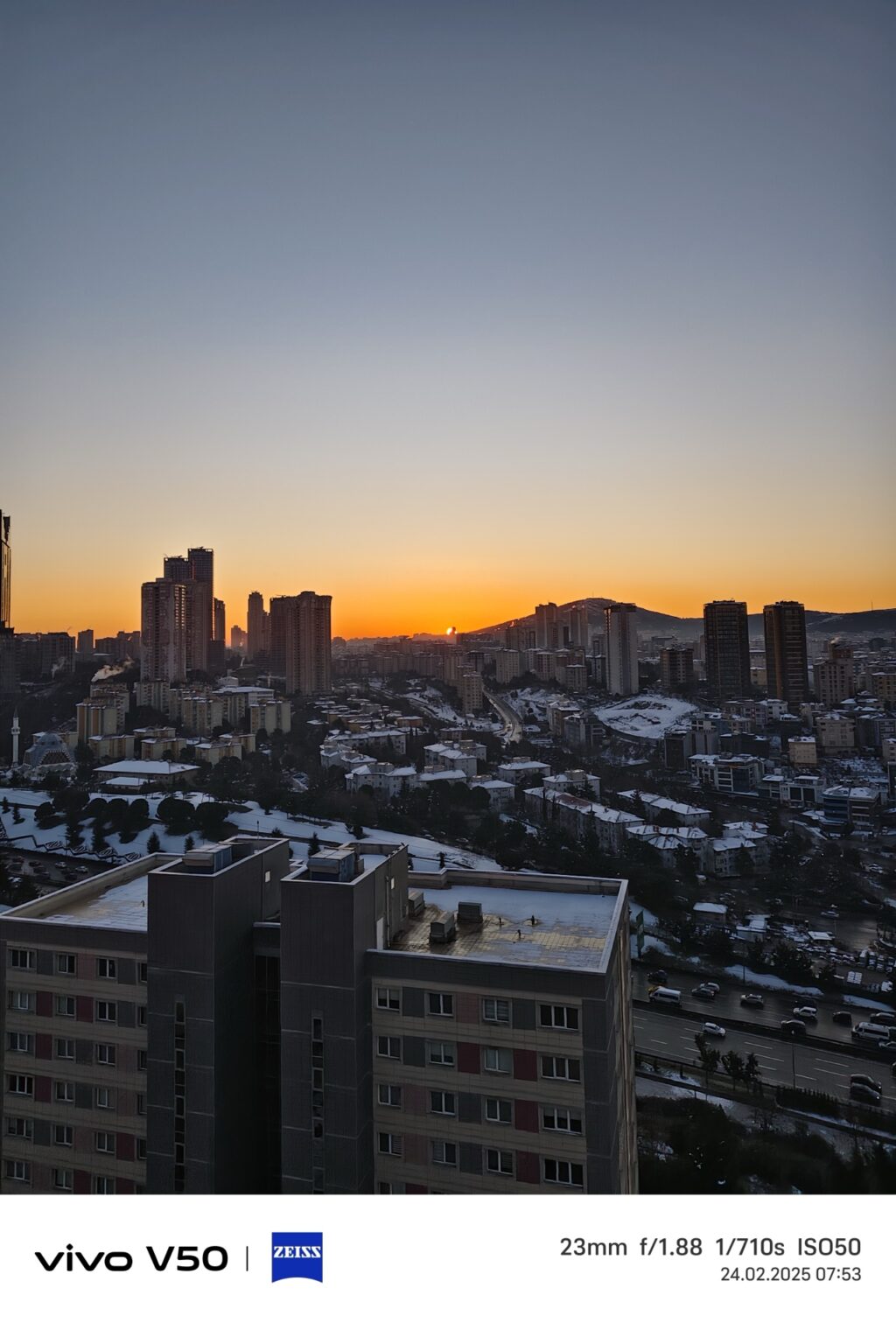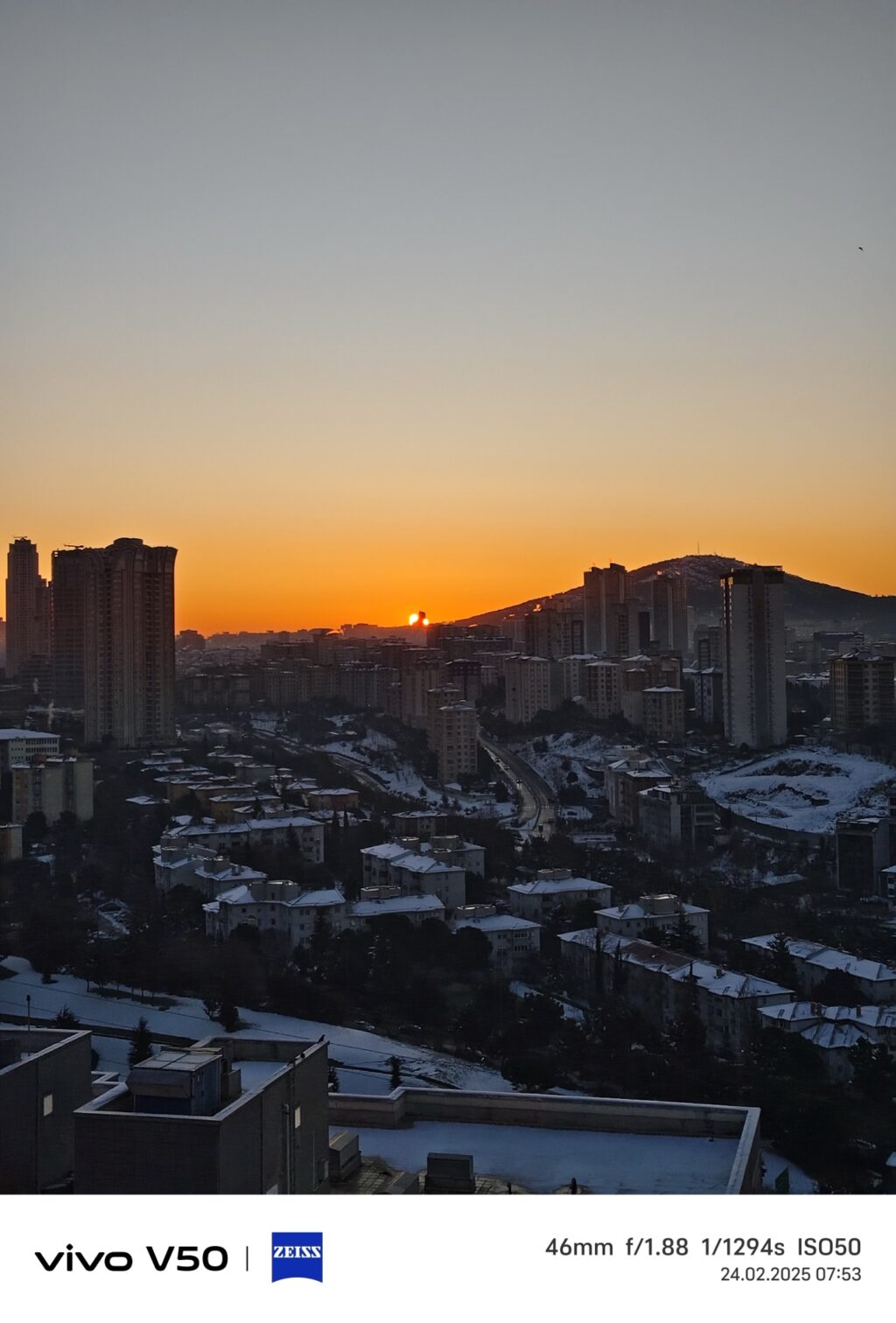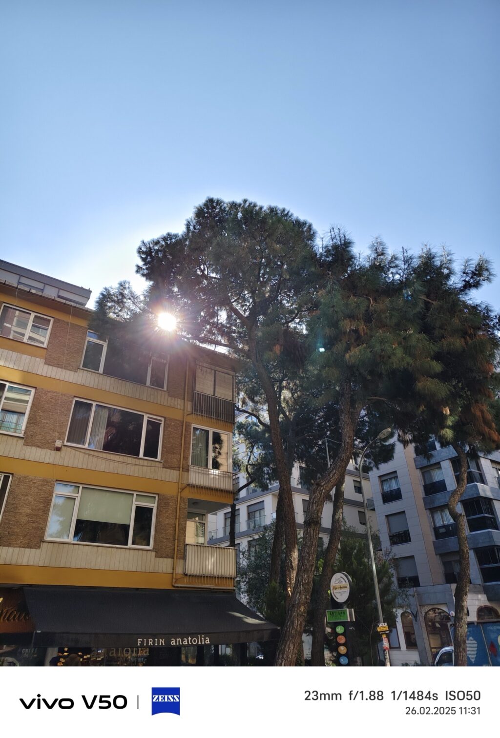 Gün ışığı performansı, renk doğruluğu ve dinamik aralık açısından oldukça tatmin edici sonuçlar veriyor. Doğal renk tonları ve iyi dengelenmiş kontrast seviyesiyle özellikle manzara ve açık hava çekimlerinde başarılı bir görüntü sunuyor. Vivo V50’nin renk işleme algoritması, hafif doygun ama gerçeğe yakın tonlar sunarak özellikle sosyal medya için paylaşmaya uygun kareler oluşturuyor. HDR modu da başarılı çalışıyor ve parlaklık farklarını iyi bir şekilde dengeliyor. Fakat, gölgeler bazen fazla ezildiği için bazı detay kayıpları yaşanabiliyor.