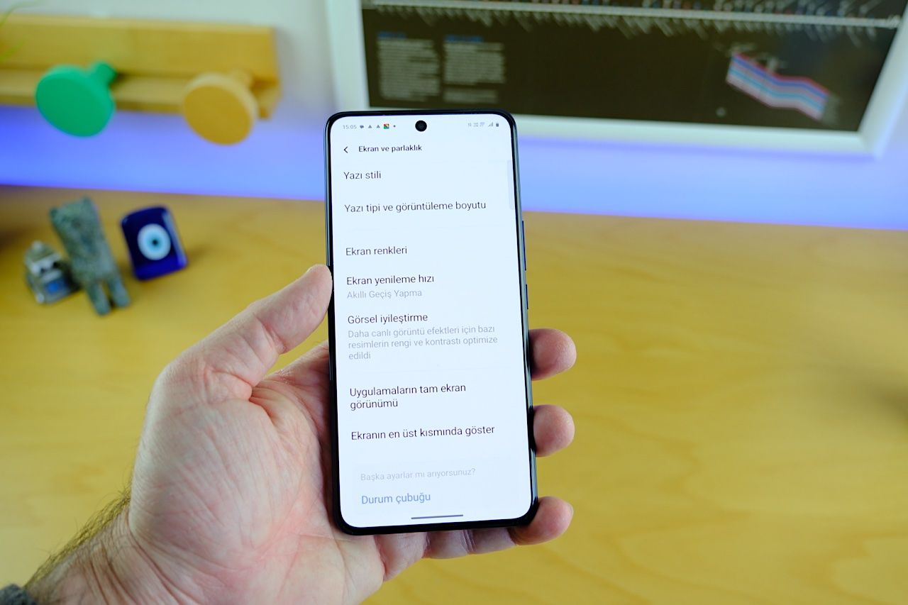 Ekranın renk doğruluğu konusunda da oldukça başarılı olduğunu söylemek mümkün. Geniş renk gamı desteği, canlı ve keskin görüntüler sunarken, yüksek kontrast oranı, derin siyahlar ve zengin renk tonlarıyla görselliği daha etkileyici hale getiriyor. Telefonun Profesyonel, Parlak ve Standart olmak üzere üç farklı ekran ayarı sunması, kullanıcıların kendi zevkine göre bir görüntü profili seçmesine olanak tanıyor. Özellikle Parlak mod, renkleri daha doygun hale getirerek sosyal medya ve video izleme deneyimini iyileştiriyor. Ancak, renklerin daha doğal görünmesini isteyenler için Profesyonel Mod daha uygun bir seçenek olabilir.