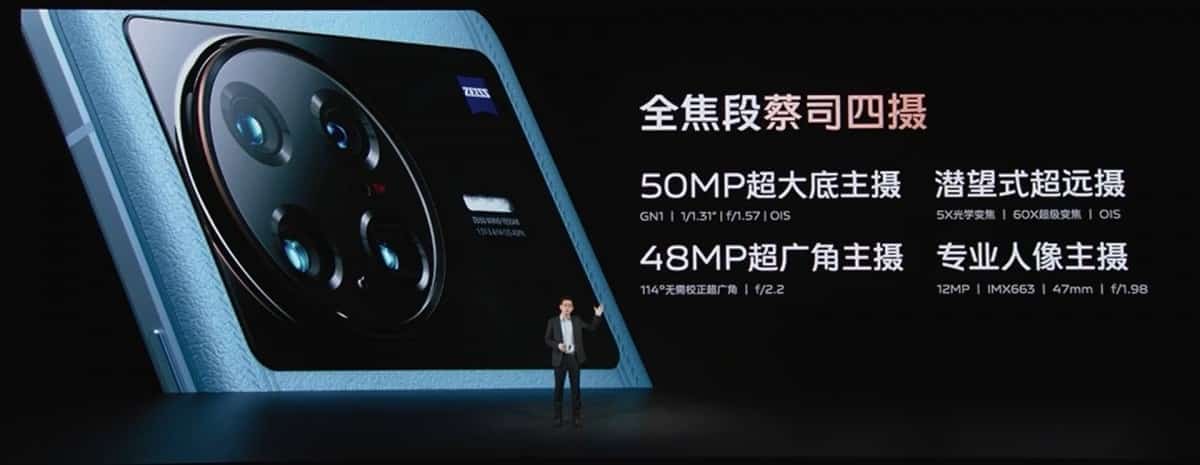 Ayrıca kamera sistemi, 125 mm odak uzaklığına (f/3.4 diyafram) sahip bir periskop da barındırıyor. Yani 5 kat optik ve 60 kata kadar dijital yakınlaştırma var. Orta menzilli zoom ve portreler için, 2 kat yakınlaştırmaya kadar çalışan 47 mm lensli (f/2.0) 12 MP modül de (IMX663) vardır. Ek olarak, 14 mm lensli (114°), 48 MP ultra geniş açılı kamera da bulunuyor. Tüm bunlar, 30 kişilik bir grubun fotoğrafını çekiyor olsanız bile yüz algılamayı çalıştırmak için yeterli güce sahip özel Vivo V1 ISP tarafından destekleniyor.