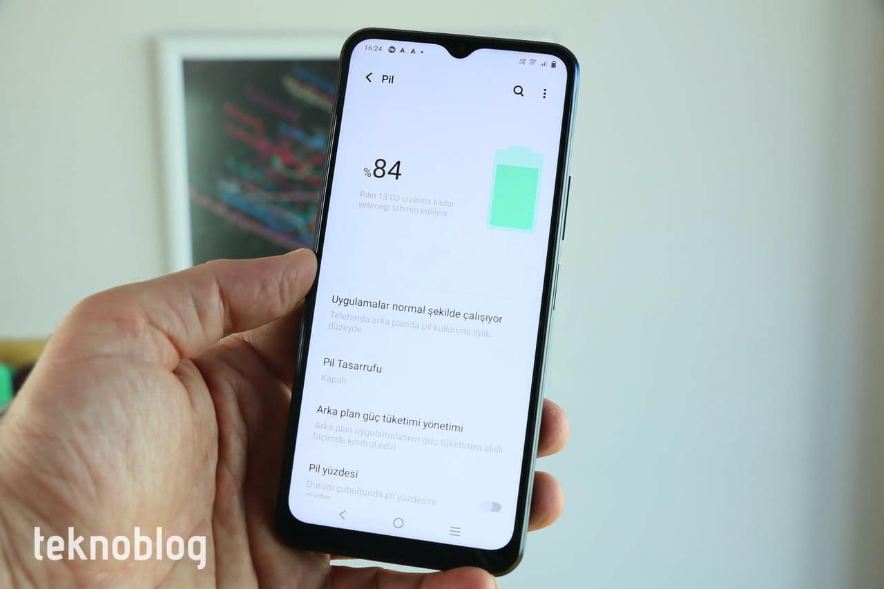Ekranın üst kısmında su damlası biçiminde çentik var. Bu çentiğin alanı yüksek olmadığı için, tam ekranda oyun oynarken veya video izlerken herhangi bir rahatsızlık yaratmıyor. Otomatik parlaklık sayesinde ekranın parlaklığı ortamın ışık koşullarına göre düzenleniyor. Ayrıca ekran ayarları içinde renk sıcaklığını ayarlamayı sağlayan basit bir ayar da bulunuyor. Göz konforu modunun bulunduğunu belirtelim, yani özellikle gece geç saatlerde mavi ışığı kısarak uykunuzun kaçmasını önleyebilirsiniz.