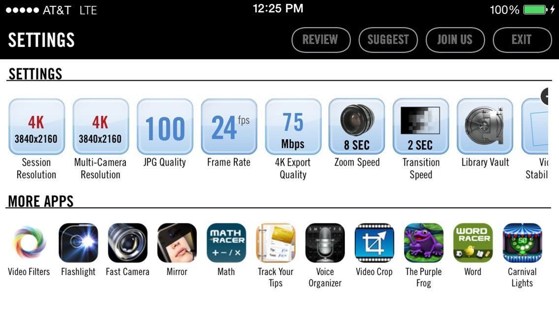 2013 model iPhone ile 4K videolar yapmaya izin veren bu uygylama iOS 7 ve üstü sürümle çalışıyor. Uygulamayı kullanmaya devam etmek için, ileride herhangi bir bilgilendirme yapılıncaya kadar iOS 8’e güncelleme yapmamak gerekiyor.