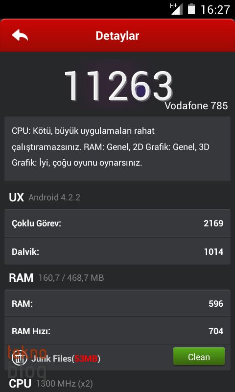 Telefonun içinde yer alan 1.3 GHz çift çekirdekli işlemci 512 MB RAM ile destekleniyor. Bu paketten çok yüksek performans beklememek gerekiyor. Keza popüler performans ölçüm araçlarından olan AnTuTu Benchmark ile gerçekleştirdiğimiz testte Vodafone Smart 4 mini 11263 puan elde etti. Bu puanla Smart 4 mini performans anlamında ortalamanın altında kalıyor, büyük uygulamaları rahat çalıştıramayacağı söyleniyor. Buna karşın grafik performansının iyi olduğu ve çoğu oyunun rahatlıkla oynanabileceği de aynı test tarafından dile getiriliyor.