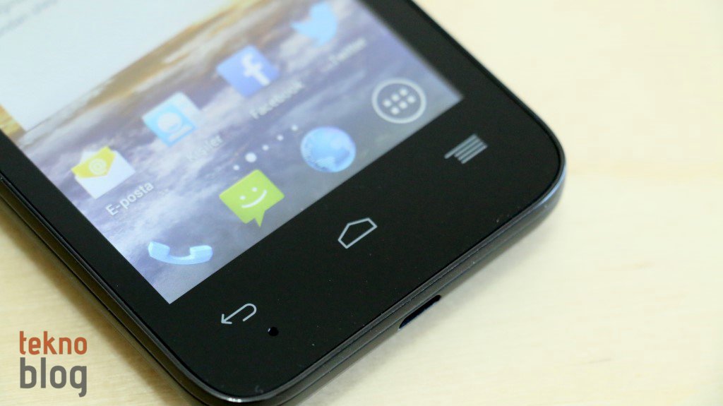 4 inç ekranın altında geri, ana ekran ve menü tuşları bulunuyor. Bu arada geri tuşunun altında mikrofon deliği de dikkat çekiyor. Sağ kenarda ses tuşları bulunurken üstte de güç butonu ve 3.5 mm. kulaklık jakı yer alıyor. Hem güç hem de ses tuşları yeterli derinliğe ve yumuşaklığa sahip, böylelikle rahatlıkla kullanılıyor. Ayrıca ses kısma tuşu kamera açıkken çekim tuşu olarak da işlev görüyor. Alt kenarda microUSB portu dikkat çekiyor, bu port üzerinden hem bilgisayar bağlantısı hem de şarj işlemi gerçekleştiriliyor.