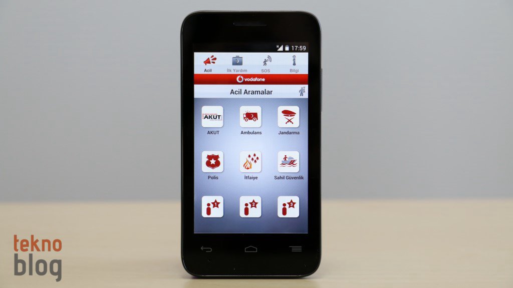 Smart 4 mini’de Vodafone tarafından hazılanmış olan AKUT, Avantaj Cepte, Cep Cüzdan ve Self Servis uygulamaları yüklü olarak geliyor. AKUT uygulaması herhangi bir felaket anında işe yarayacak özellikleri bünyesinde barındırıyor. Uygulama içinde ambulans, itfaiye, polis acil numaraları; SOS, Fener ve Pusula gibi araçlar bulunuyor. Avantaj Cepte uygulaması adından da anlaşılacağı üzere çeşitli kuruluşların ve markaların sunduğu indirim ve fırsatları takip etme imkanı veriyor. Cep Cüzdan mobil ödeme işlemleri için kullanılırken Self Servis uygulaması da Vodafone hattınızla ilgili her türlü işlemi gerçekleştirmeyi mümkün kılıyor. Ana ekranda yer alan Vodafone klasörü içinde bu dört uygulamanın kısayolu mevcut.