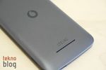 Vodafone Smart 4 power’ın arkasını yumuşak yüzeye sahip ve koyu gri renkli bir kapakla kaplanıyor. Bu arada telefonun siyahın dışında beyaz renkli versiyonunun da bulunduğunu sözü gelmişken belirtelim. Söz konusu arka kapak sağ kenarda bulunan çentik yardımıyla kolaylıkla çıkarılabiliyor. Bu kapak çıkarılabilir olsa da, telefonun gövdesine takılıyken oynama yapmıyor, sonuç olarak Smart 4 power sağlam bir telefon olduğu hissini fazlasıyla veriyor. Ayrıca telefonu bel hizasından yere düşürdüğümüzü ve arka kapağın üstü kenarında, belli belirsiz bir aşınmadan başka herhangi bir zarar görmediğimizi de belirtmemiz iyi olacaktır.