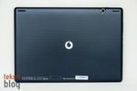 Tabletin noktalı dokularla kaplı plastik arka yüzeyinin ortasında Vodafone’un logosu yer alırken, bu logoyla aynı dikey doğrultuda, altta tabletin üreticisi olan Lenovo’nun logosu dikkat çekiyor. 5 megapiksel kameraysa hemen üst kenarla buluşma noktasında, arkadan bakıldığında sağa doğru yanaşık şekilde yerleştirilmiş. Hoparlörler de kamerayla aynı doğrultuda, sağ ve sol kenarlara yakın şekilde konumlandırılmış.