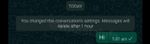 2.20.83 ve 2.20.84 numaralı beta sürümlerinde kullanıcılar mesajları için bir saat, bir gün, bir hafta, bir ay veya bir yıl olarak sunulan silme süresi seçeneklerinden birini tercih edebiliyor.