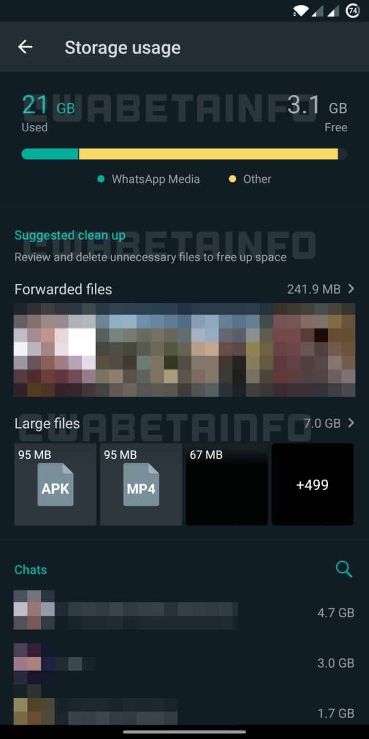 WhatsApp kullanıcılarını bekleyen tek yenilik bu değil. İpuçlarına göre yenilenmiş bir depolama yönetimi sayfası da geliyor. WABetaInfo sitesi, yenilenmiş sayfanın aşağıdaki görüntüye sahip olacağını işaret ediyor: