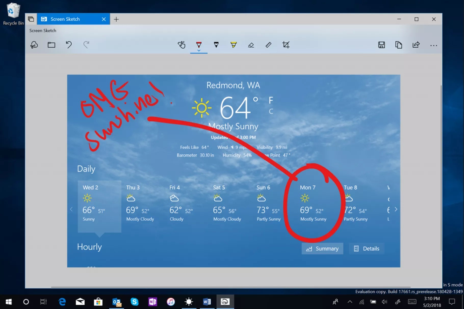 Screen Sketch adı verilen, daha önce Windows 10’un Windows Ink işlevi içinde yer alan özellik, ekran görüntüleri alma ve bunların üzerinde notlar almaya yarayacak bağımsız bir uygulamaya dönüşüyor. Microsoft yıllardır birtakım farklı ekran görüntüleri alma araçlarını test ediyor. Ancak yeni gelecek olan Win+Shift+S kısayol tuş takımı, seçim aracıyla ekran görüntüsü alınacak alanın seçilmesini ve bunun doğrudan kopyalama panosu üzerinden paylaşılmasını mümkün kolacak. Ayrıca uygulama bir bildirim de gösterecek, böylelikle ekran görüntüsünün üzerinde bazı çizimler yapıp bu şekilde paylaşmak mümkün olacak. Öte yandan klavye üzerindeki ekran görüntüsü alma tuşunu da bu işlevle değiştirebileceksiniz. Bu da Win+Printscreen kombinasyonundan daha işlevsel bir aracın kullanılmasını sağlayacaktır.