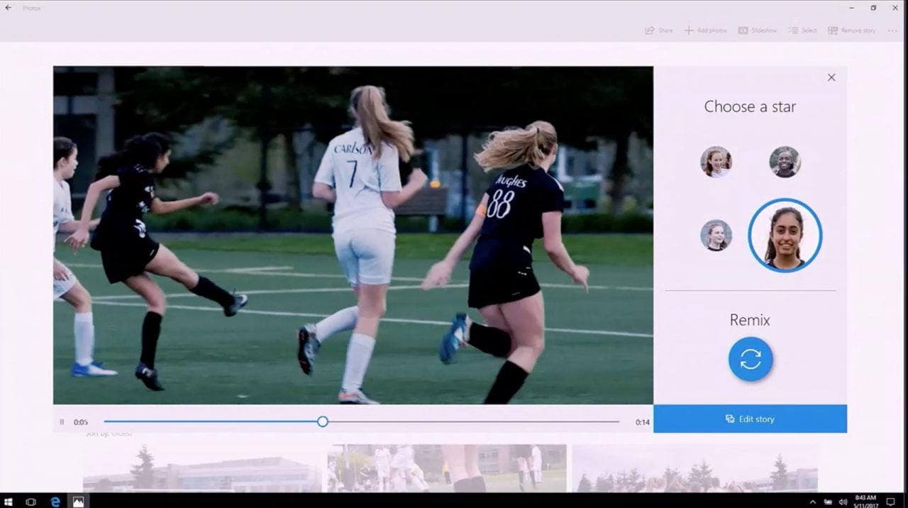 Bu uygulamada temel fikir kullanıcının müdahalesini mümkün olduğu kadar azaltmak. Story Remix kliplerdeki en iyi anları tanıyor, örneğin insanların gülümsediği veya güldüğü anları saptıyor, daha sonra bu bölümleri kırpıyor. Videoda hangi kişilerin olduğunu tanımlıyor ve daha sonra bunları “kahraman” olarak belirlemeye izin veriyor. Bu kişiler videonun odak noktasında olacak şekilde videolar yeniden karıştırılabiliyor.