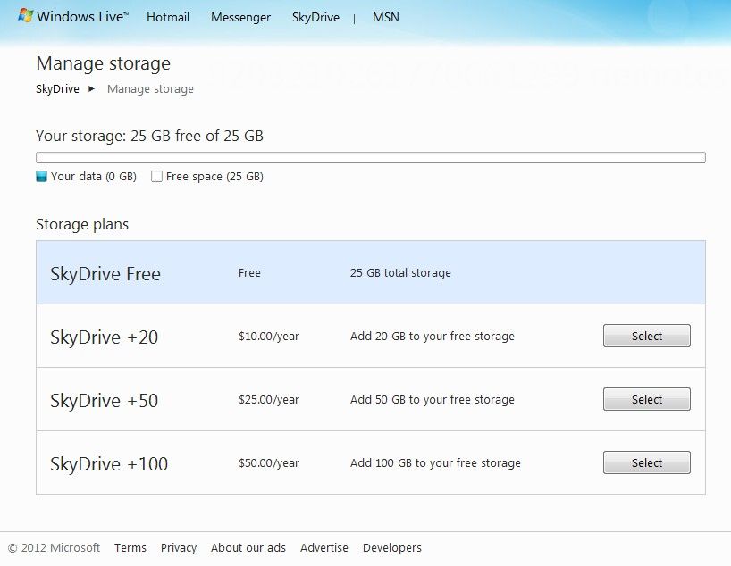 Bulut tabanlı depolama servisleri yavaş yavaş şirketlerin yeni rekabet alanı hâline geliyor. Microsoft’un SkyDrive adı verilen bulut tabanlı depolama servisi de bu alanda önemli oyunculardan bir tanesi ve görünüşe göre Microsoft kullanıcılara verdiği 25 GB’lık alanın üstüne ek depolama alanı eklemek isteyenler için çeşitli paralı seçenekler sunmaya hazırlanıyor.