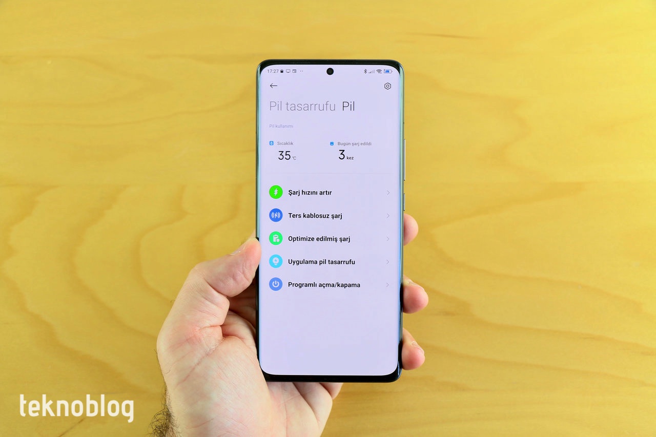 Söz konusu ayar kapalı olsa bile şarj performansı memnun edici seviyede bulunuyor. Pratikte yaptığımız denemede aşağı yukarı bu performansa eriştik. Telefon açık durumdayken, 120W güç adaptörüyle yaptığımız şarjda, telefonun pili yüzde 5’ten yüzde 78 seviyesindeki doluluğa sadece 20 dakikada erişti. Yani sadece yarım saat içinde telefonun pilini tamamen doldurmak mümkün oldu.