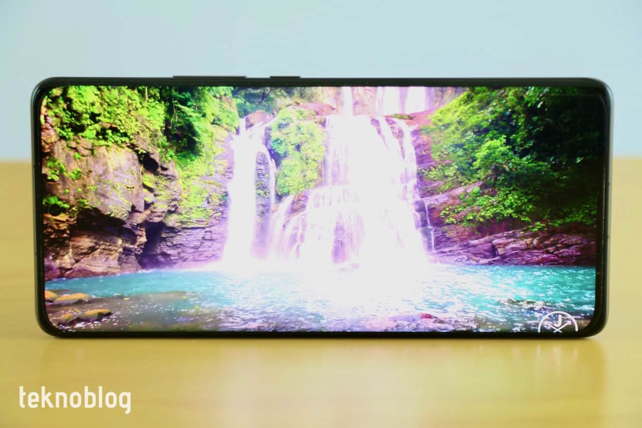 Ön tarafta ekran kavisli kenarları, üstte ve alttaki ince çerçevesiyle yüzde 89.6’lık bir ekran-gövde oranının elde edilmesini sağlıyor. Ekranın üst kısmında, ortalanmış bir selfie kamera deliği var. Ekranın hemen üstünde, ince ve uzun bir ızgaraya ahize yerleştirilmiş. Alt kenarda USB-C portu, mikrofon, nano SIM kart tepsisi ve hoparlör var. Üst kenarda ikinci hoparlör, ikinci mikrofon ve kızıl ötesi portu var. Ayrıca üst kenarda, hoparlörlerin Harman Kardon tarafından desteklendiğini gösteren küçük bir logo da mevcut.