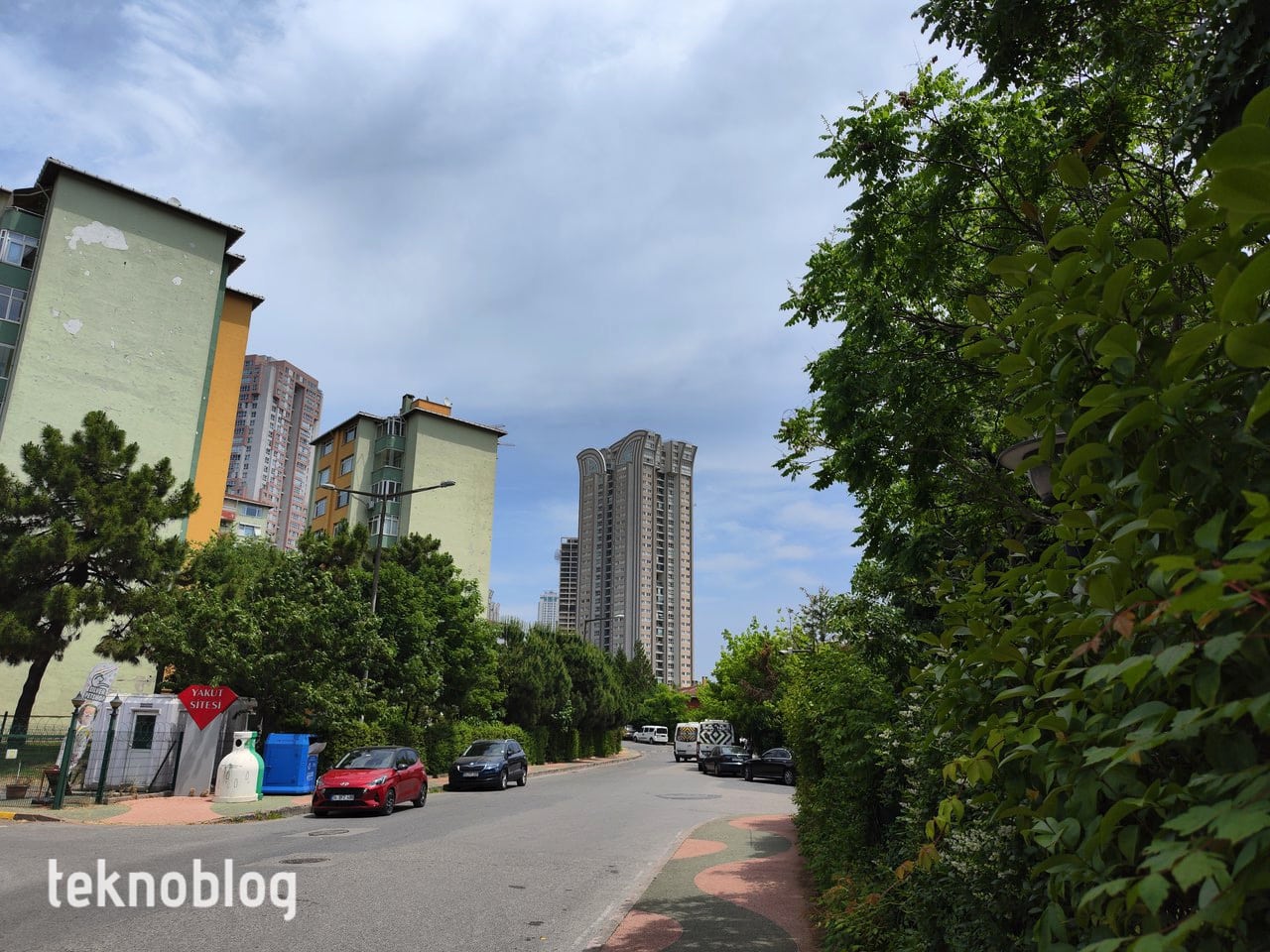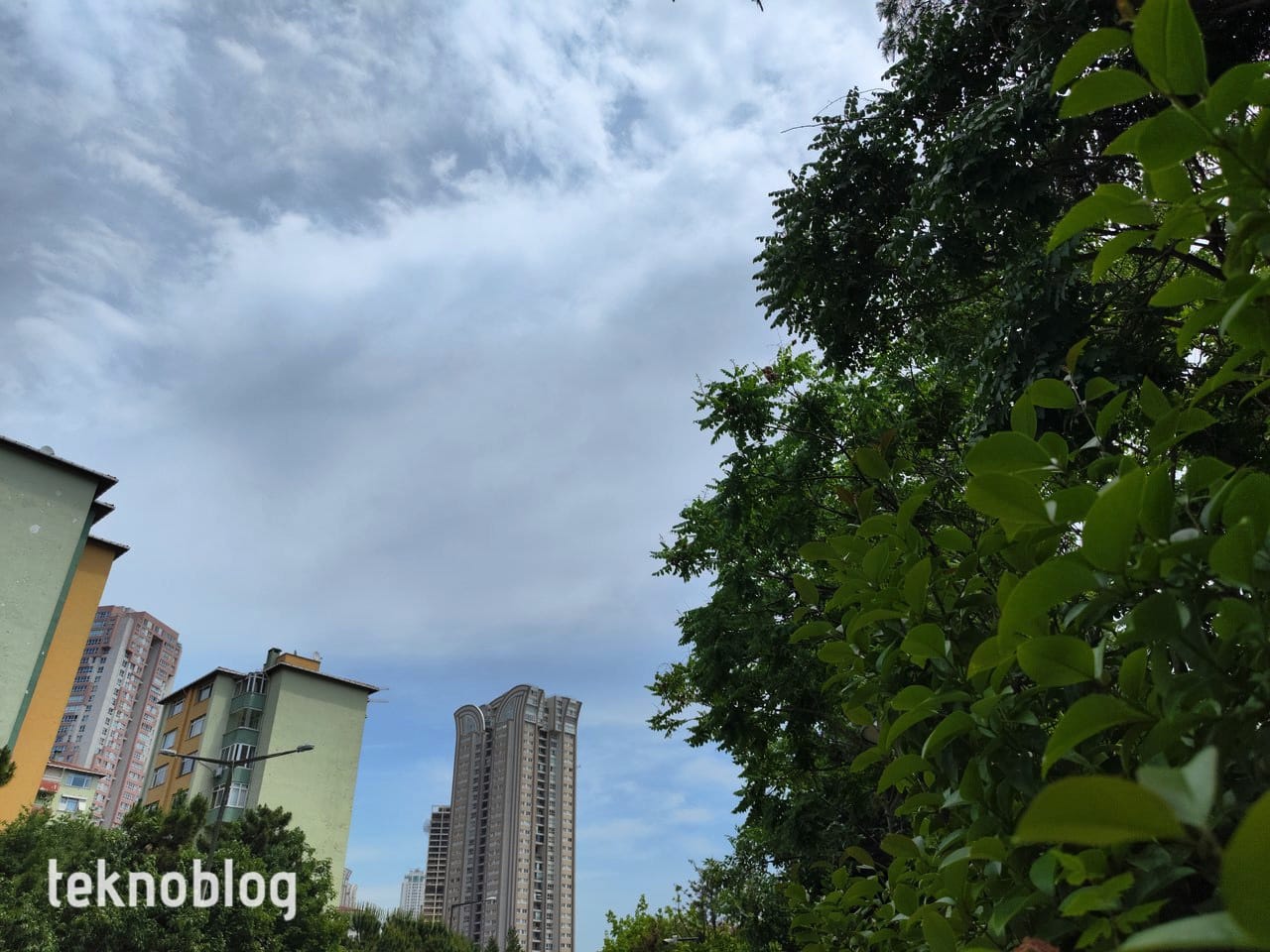 Kamera uygulaması, çoğu Android telefonda gördüğümüz tarzda, artık hiç yabancı gelmeyen bir kullanıcı arayüzüyle geliyor. Ekranın bir tarafında çekim tuşu, ön ve arka kamera geçişi, çekim modları, yakınlaştırma kontrolleri bulunuyor. Diğer kenarda ise Ayarlar, Google Lens, filtreler, yapay zekâ, HDR ve flaş kontrollerini görüyoruz. Yapay zekâ desteği sayesinde sahneye göre renk ve parlaklık ayarı yapılıyor. Bu ayar açıldığında sahne tanıması hızlı biçimde yapılıyor. Çekimlerde ise renklerin daha doygun hâle geldiğini görüyoruz. Özellikle sosyal medya paylaşımlarında bu tarz çekimler daha çok beğenilecektir. Bu arada filtreler içinde arka kamera ile yapacağınız çekimlerde de uygulayabileceğiniz güzelleştirme araçları var. Pro, Portre gibi çekim modları Fotoğraf ve Video modlarının yanına eklenmiş. Daha Fazla bölümünde ise çok daha fazla çeki modunu görüyoruz. 50MP ile tam çözünürlükte fotoğraf çekimi, Süper Ay modu ile ay fotoğraflarını yüksek detaylarda yakalama bunlar arasında yer alıyor.