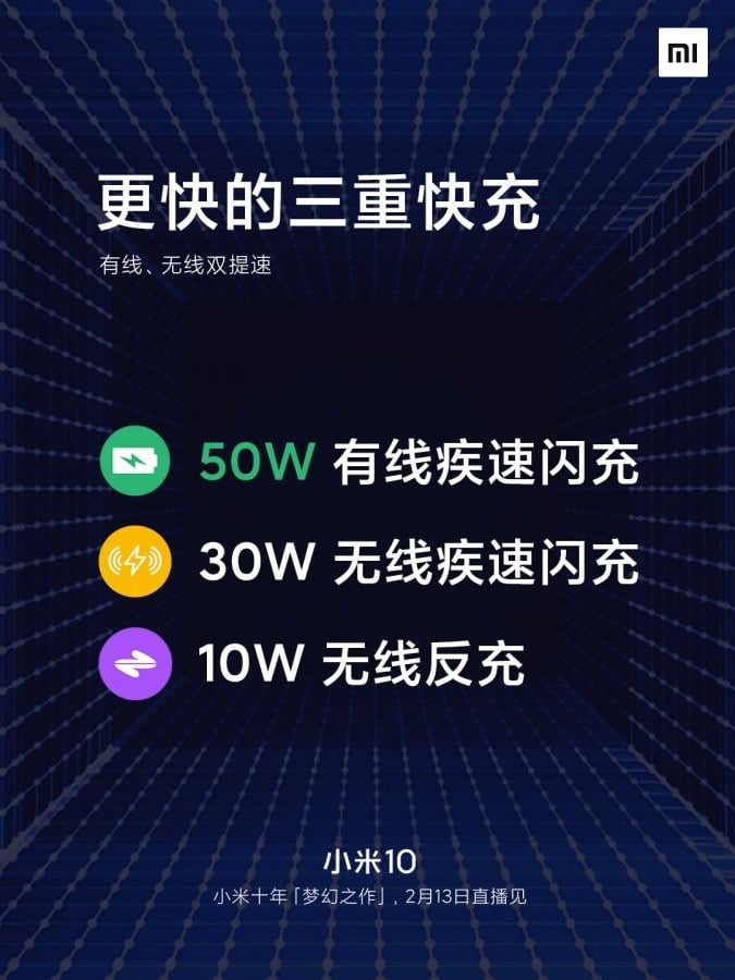 Mi 10’a dair en son paylaşımlar Xiaomi’nin ve şirketin CEO’su Lei Jun’un resmi Weibo hesapları üzerinden geldi. Bu paylaşımlara göre, Mi 10’da 90Hz yenileme oranına sahip bir ekran bulunacak. 50W şarj hızı da Xiaomi Mi 10’un doğrulanan özellikleri arasına katıldı.