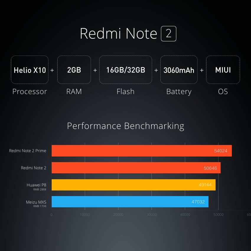 Telefonun küresel pazarda çıkışı 19 Ağustos tarihinde gerçekleşecek. Önceki versiyonlarına göre daha hızlı ve verimli bir çalışma imkanı sunan MIUI 7 işletim sistemiyle birlikte gelen Xiaomi Redmi Note 2’de MediaTek Helio X10 2.0 GHz sekiz çekirdekli işlemci ve 2 GB RAM bulunuyor.