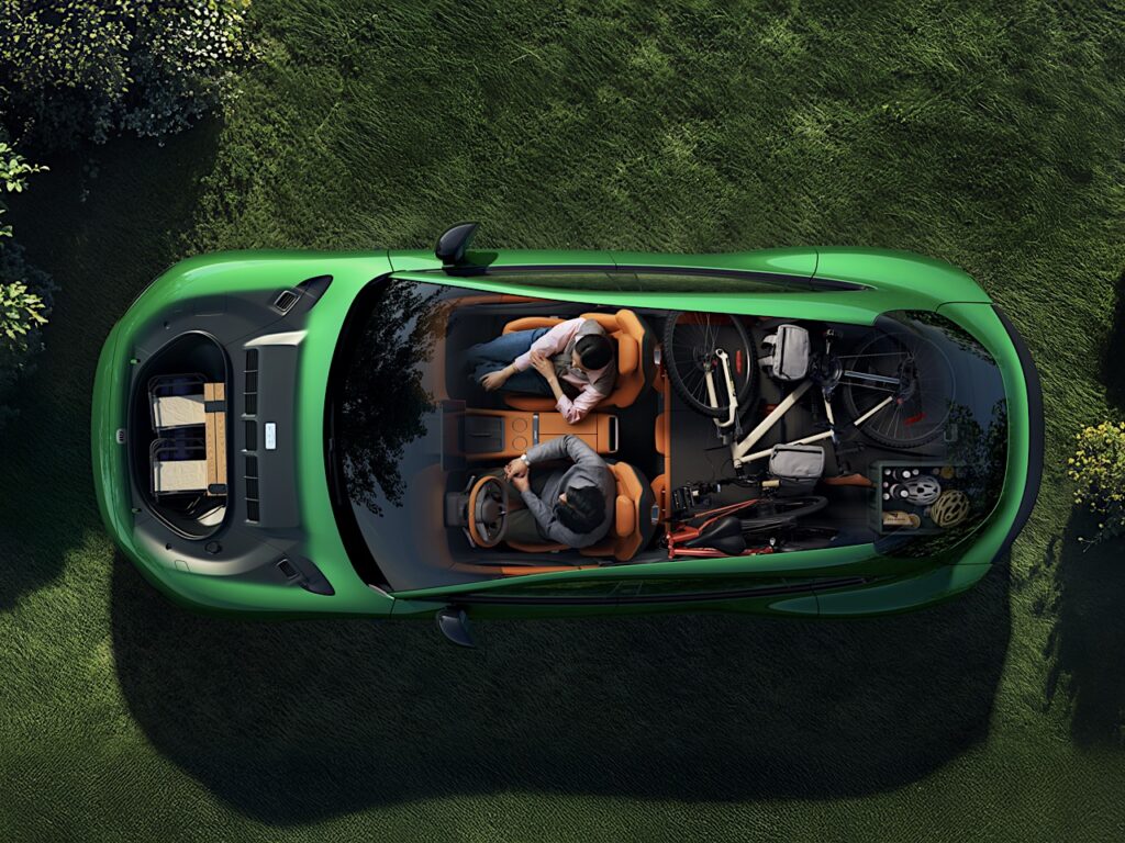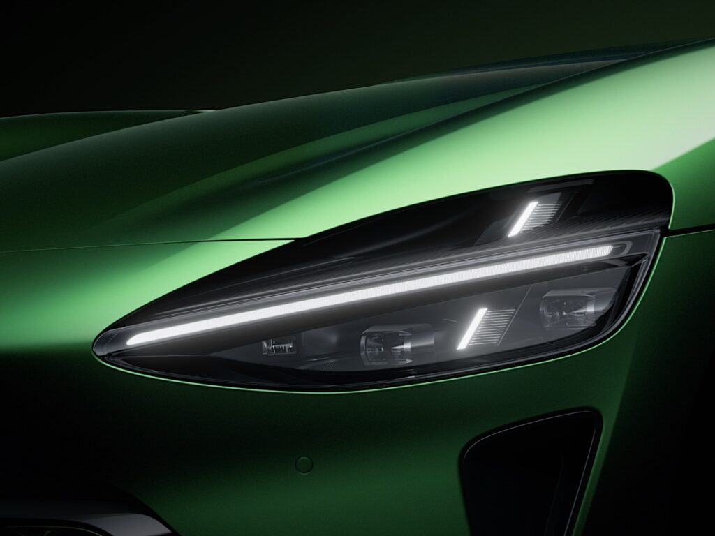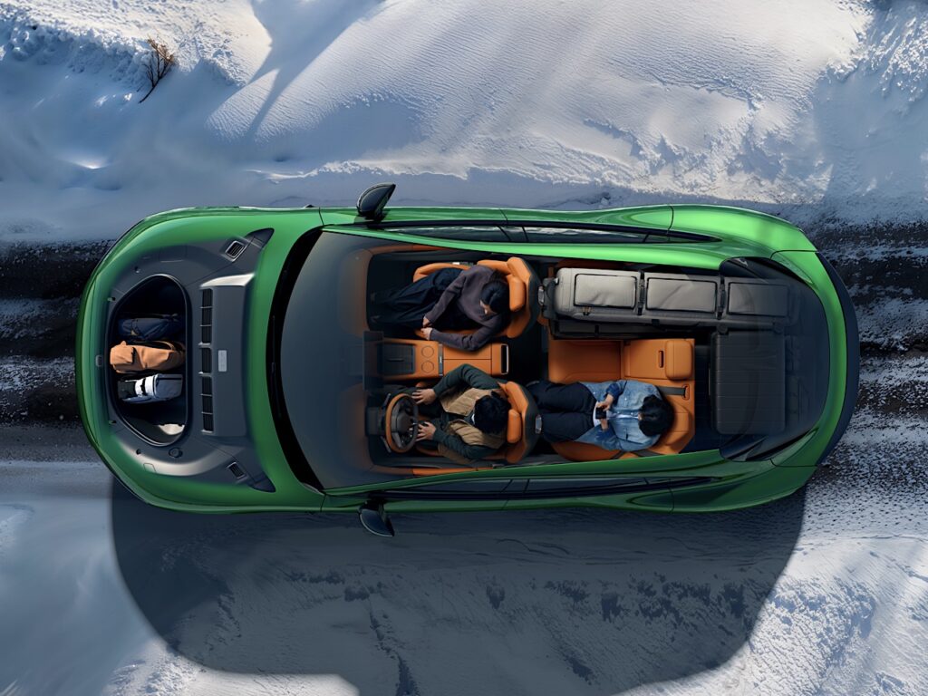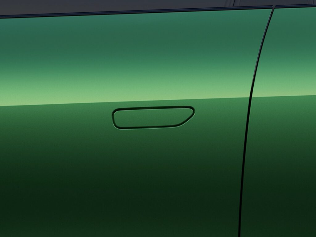 Tasarım anlamında ilk etapta oranlar göze çarpıyor. Gövde-boy oranı, teker-yükseklik dengesi ve genişlik-yükseklik arasındaki oran, yola basan güçlü ama dengeli bir gövde ortaya çıkarıyor. 3.11 metrekarelik yekpare kaput, sınıfındaki en büyüklerinden biri olarak öne çıkarken, 141 litrelik ön bagaj bu geniş yüzeyin altına yerleştirilmiş. Gömülü kapı kolları ve sportif tekerlek kemerleriyle birleşince, hem aerodinamiye katkı sağlanıyor hem de araç tasarımı daha bütüncül bir yapıya kavuşuyor.