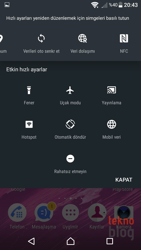 Xperia kullanıcı arayüzüne Sony’nin eklediği ufak dokunuşlar var. Örneğin bildirim tepsisindeki hızlı ayarlar bölümünü özelleştirebilir, ayarların sıralamasını ve hangi ayarların yer alacağını dilediğiniz gibi belirleyebilirsiniz. Bunun dışında son uygulamalar ekranında da, açılmış olan tüm uygulamaları tek seferde kapatmayı sağlayan bir düğme bulunuyor. Ayarlar içinde, Depolama ve bellek bölümü altında yer alan Akıllı temizleyici özelliği, uygulama kullanım sıklığına göre depolamayı ve belleği otomatik olarak optimize etmeyi sağlıyor.