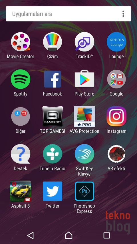 Daha önceki Xperia Android telefonlarında gördüğümüz hesap makinesi ve benzeri küçük uygulamalar kalkmış. Ancak Sony’nin Müzik, Albüm, Video, TrackID, Xperia Lounge, Movie Creator, Çizim gibi birçok uygulaması daha önce olduğu gibi yine Xperia XA’da da mevcut. Neyse ki, Sony çoğu uygulamayı kaldırma imkanı veriyor. FM radyonun da bulunduğunun belirtmeden geçmeyelim.