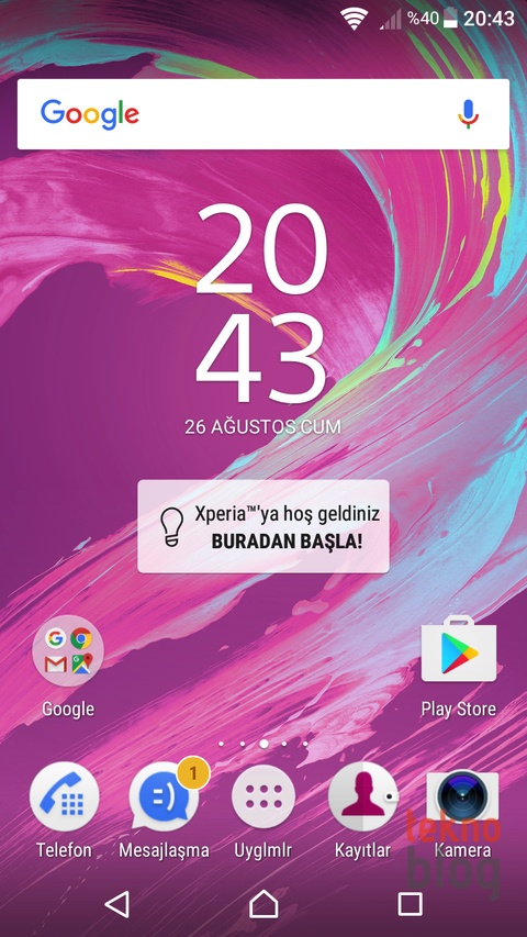 Ana ekran bildiğiniz Xperia ana ekranından farksız bir görünüme sahip. Google uygulamaları bir klasör altında sunuluyor. Parmağınızı ekranın ortasında yukarıdan aşağı doğru sürükleyerek uygulama arama ekranına ulaşabilirsiniz. Bu açıdan iOS’teki Spotlight arama arayüzüne benzer bir deneyim sunuluyor. Önerilen başlığı atılsa da, bu arayüzde genellikle yüklediğiniz uygulamalar gösteriliyor. Uygulama menüsü ise daha önceki Sony telefonlarından alıştığımız tarzda, sayfalı bir yapıda geliyor. Uygulamaların sıralamasını değiştirebilir, kolaylıkla silebilir, ikonların boyutlarını ve diğer uygulama menüsü görünüm ayarlarını de değiştirebilirsiniz. En tepede yer alan arama motoru da uygulamaları hızlı şekilde bulmanızı sağlıyor. Xperia XA kullanıcı arayüzünü özelleştirmenizi sağlayacak çeşitli tema seçenekleri Temalar uygulamasında sizi bekliyor.