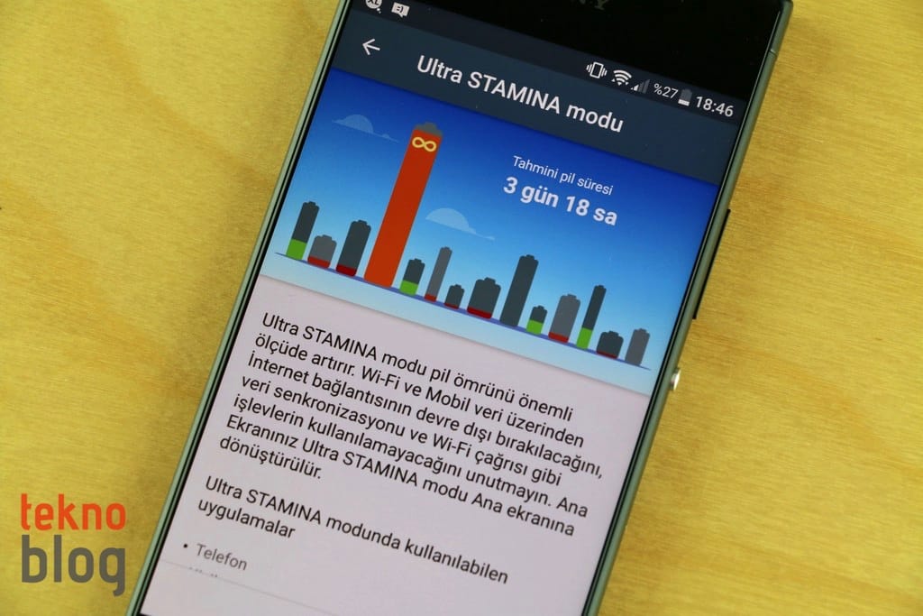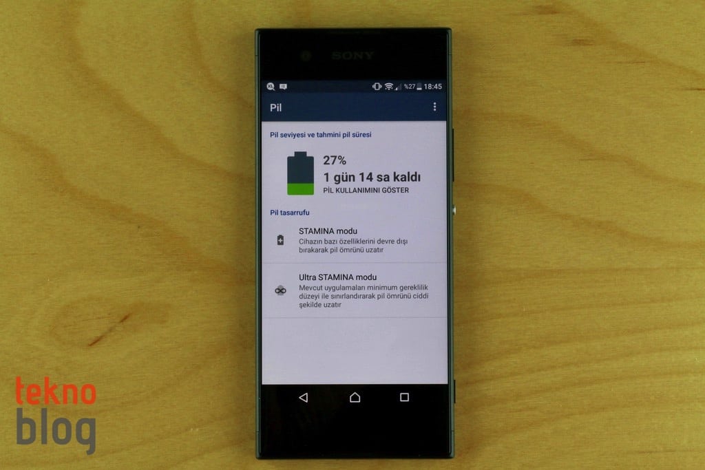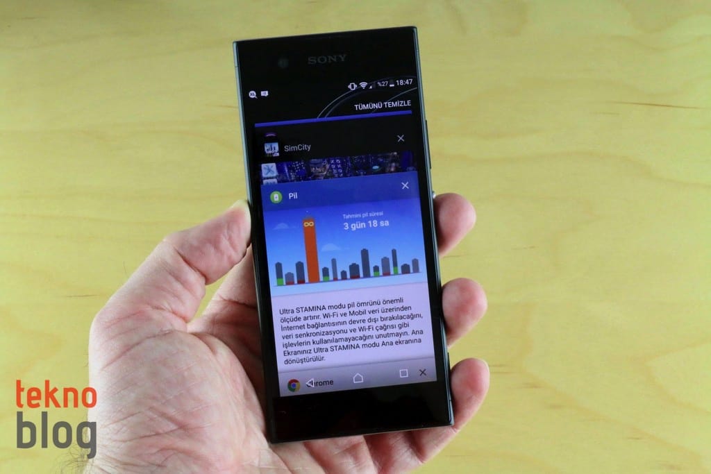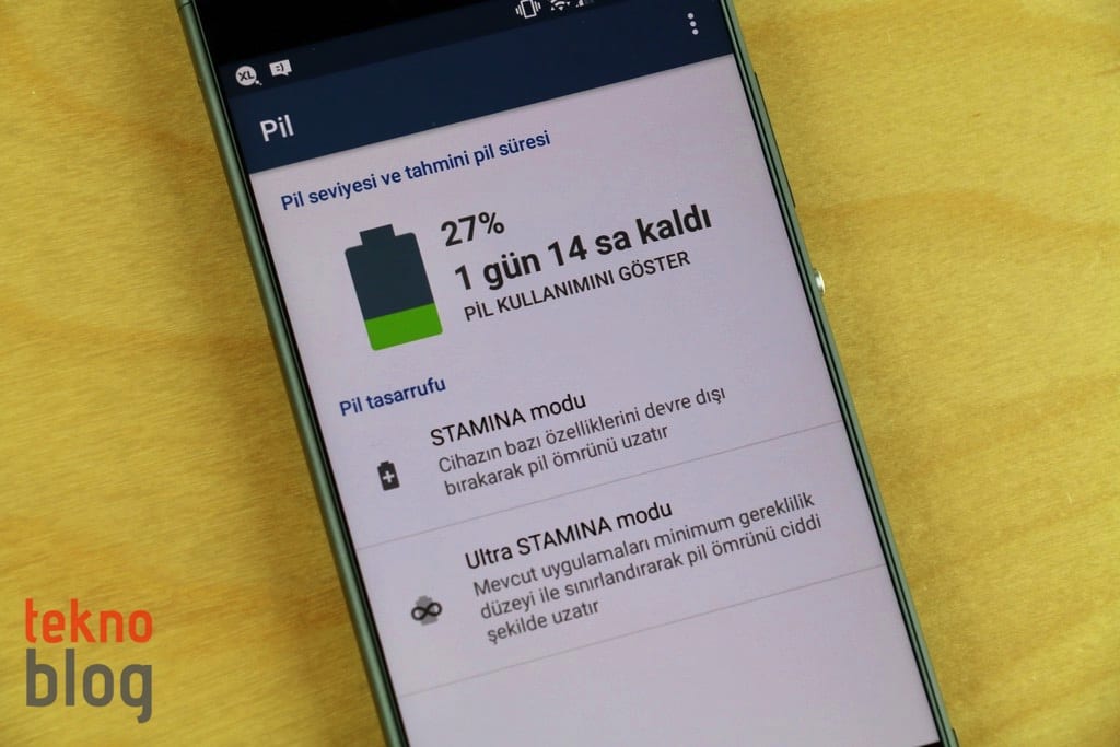 2300 mAh kapasiteli pil günümüzün standartlarında artık biraz düşük kaçmaya başladı. Yine de, Xperia XA1’in düşük çözünürlüklü ekranı, güç tüketimi bakımından aşırıya kaçmayan işlemcisi ve aynı zamanda STAMINA modu sayesinde iki güne varan pil ömrüne mümkün oluyor. Pil seviyesi yüzde 10’un altına düştüğünde ise Ultra STAMINA modunu kullanarak pilin daha uzun süre boyunca dayanmasını sağlayabilirsiniz.