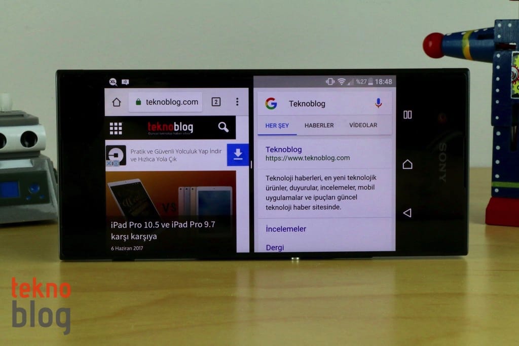 Bununla birlikte Sony’nin deneyimi farklılaştıran çeşitli görsel bileşenleri ve uygulamaları mevcut. Neyse ki, bunlar çok fazla rahatsız edici değil, içlerinde işinize yarayacak olanları da bulabilirsiniz. İnternet tarayıcısı olarak Chrome’u tercih eden Sony; müzik, galeri ve video tarafında her zaman olduğu gibi kendi geliştirdiği uygulamaları sunuyor. PlayStation uygulaması sayesinde Xperia XA1’i, eğer varsa evinizdeki PlayStation 4 oyun konsoluna bağlayabilir, oyun keyfini telefonunuzdan da yaşamaya devam edebilirsiniz. Ayrıca bu uygulama içinden PSN ağına bağlanmak, oyunları mobil cihaz üzerinden satın almak da mümkün oluyor. Xperia dünyası olarak adlandırılan uygulama ise Xperia XA1 ile yeni tanışanlara telefonlarını alışmalarını kolaylaştıracak çeşitli ipuçları sunuyor. Xperia Lounge, Movie Creator, Çizim, AVG Virüs Koruması gibi, daha önceki Sony Xperia Android telefonlarında gördüğümüz uygulamaları XA1’de de yüklü olarak görüyoruz.