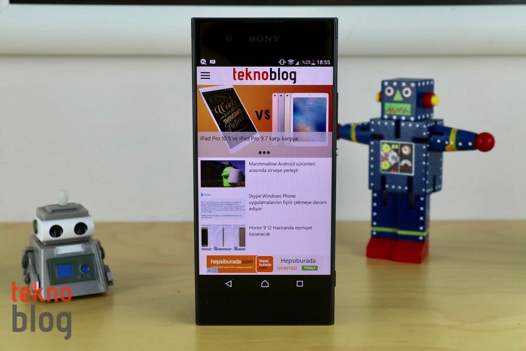 Sony Xperia XA1’in 5 inç ekranı 1280 x 720 piksel çözünürlüğe sahip. Yüksek çözünürlüklü ekran tutkunları için pek çekici görünmese de, XA1’in ekranı gayet tatmin edici bir keskinlik ve netlik sağlıyor. Ekranın derin siyah renk seviyesi, canlı renkleri ve yeterli seviyede olan görüş açısı da kullanım deneyimini artırıyor. İnternette gezinirken, sosyal ağ uygulamalarında vakit geçirirken bu ekran sizi fazlasıyla tatmin edecektir. Ekranın dışarıda, parlak güneş ışığı altında da yeterli bir görüş sağladığını belirtmeden geçmeyelim.