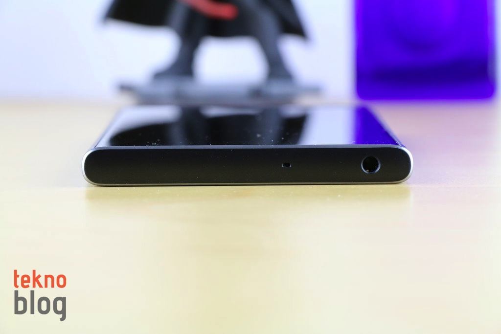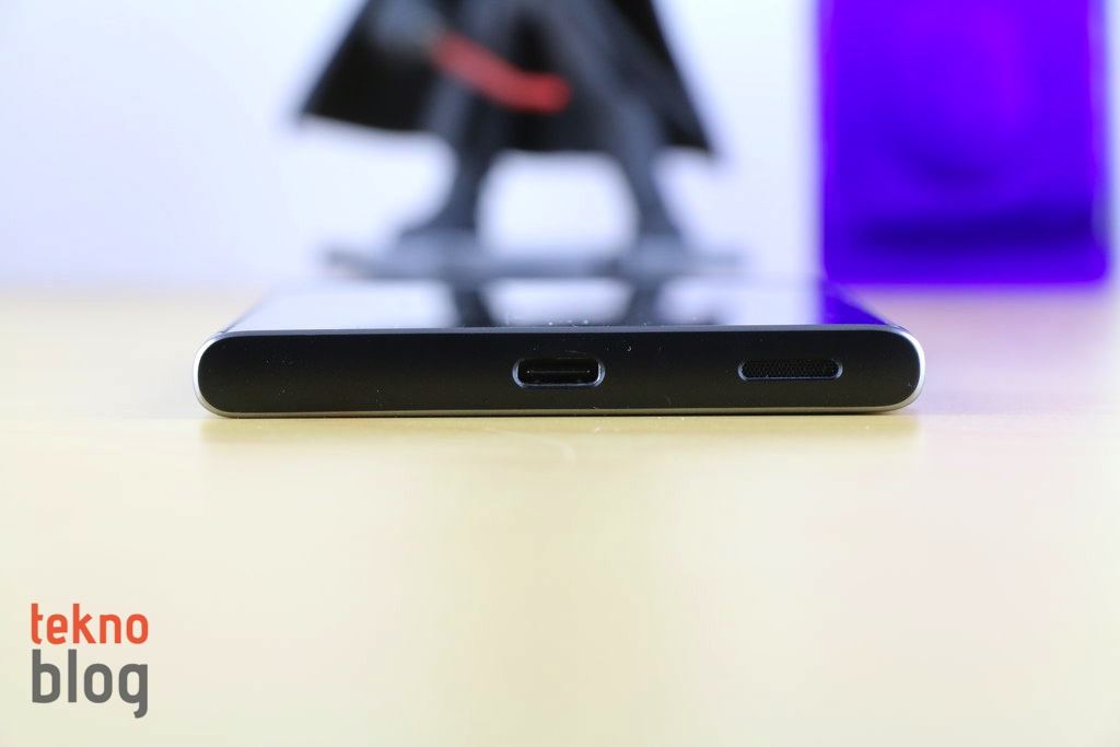 Telefonun tek bir hoparlörü var ve o da alt kenarda, USB-C portunun hemen yanında bulunuyor. Üst kenarda 3.5 mm. kulaklık jakı ve ikinci mikrofonu görüyoruz. Alt ve üst kenarları ana gövdeden ayıran metal görünümlü şeritler de telefonun havasını biraz daha farklılaştırıyor. Sol kenarda microSD ve nanoSIM kart yuvası mevcut. Sağ kenarda ise yukarıdan aşağı doğru ses tuşu, güç butonu ve kamera düğmesi sıralanıyor. Kamera düğmesinin bulunması fotoğraf çekimlerini biraz daha kolaylaştırıyor. Xperia XZ Premium ve benzeri suya dayanıklı telefonlarda su altı çekimleri için de iyi oluyordu. Ancak Xperia XA1 Plus’ta suya dayanıklılık özelliği bulunmadığı için bu fırsattan yararlanmak mümkün olmuyor.